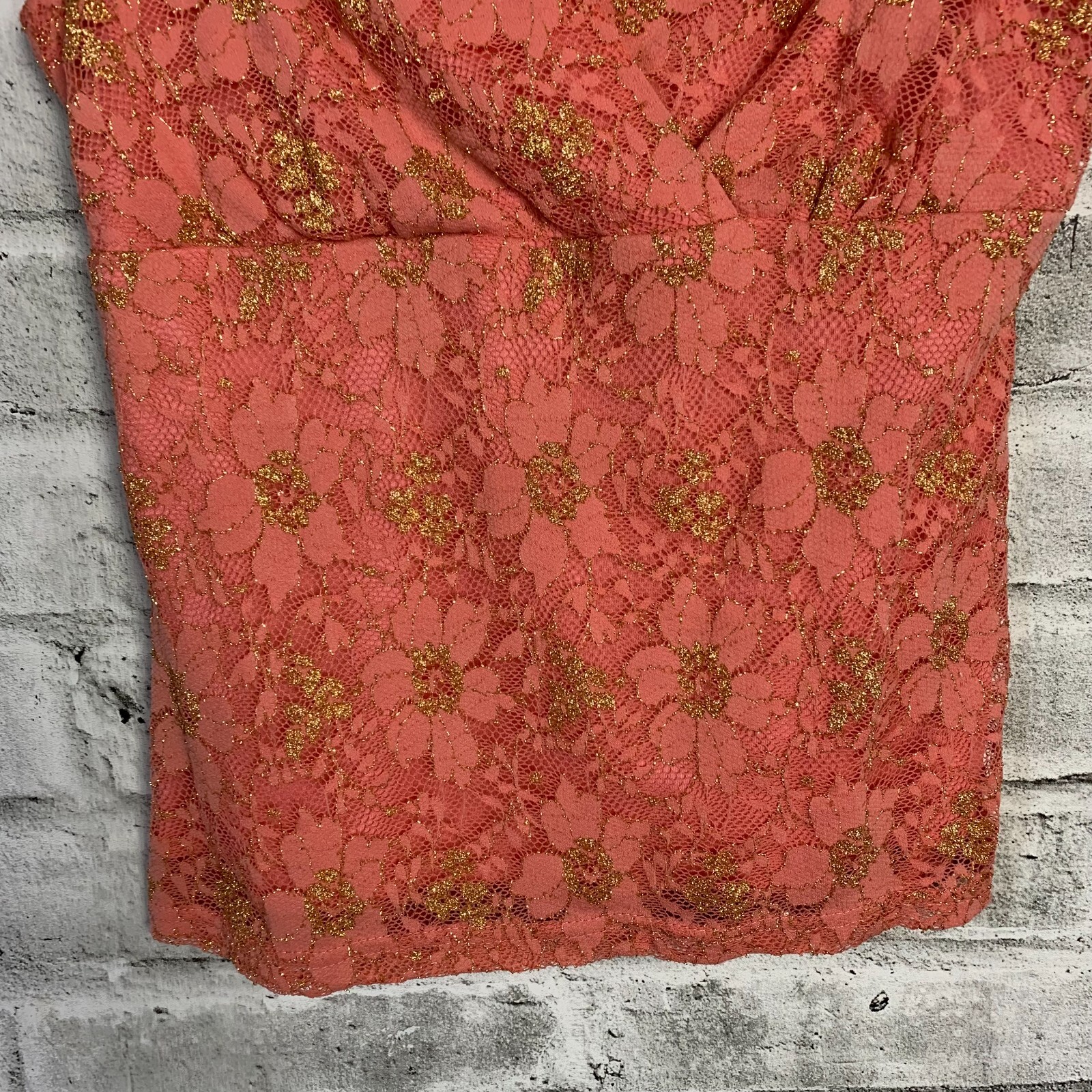 Vintage Y2k Babydoll Tank Sz M Orange Gold Sheer Lace Whimsigoth Fairy Coquette