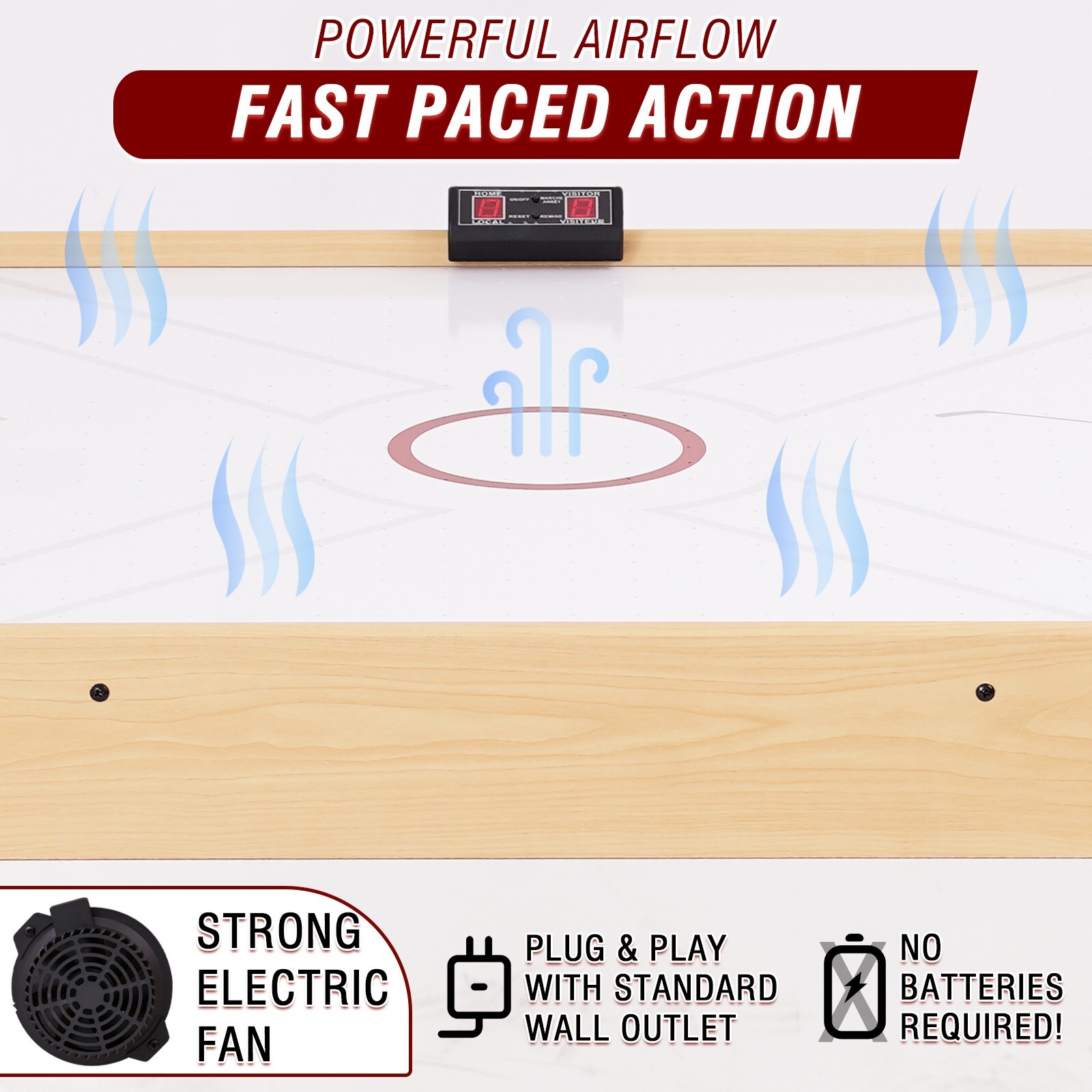 54 Air-Powered Hockey Table 12V Sport Hockey Game Pushers Pucks LED Scoreboard