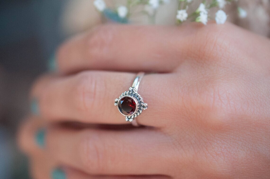 925 Sterling silver Natural Garnet Ring Gemstone Women Jewelry For Her M 1