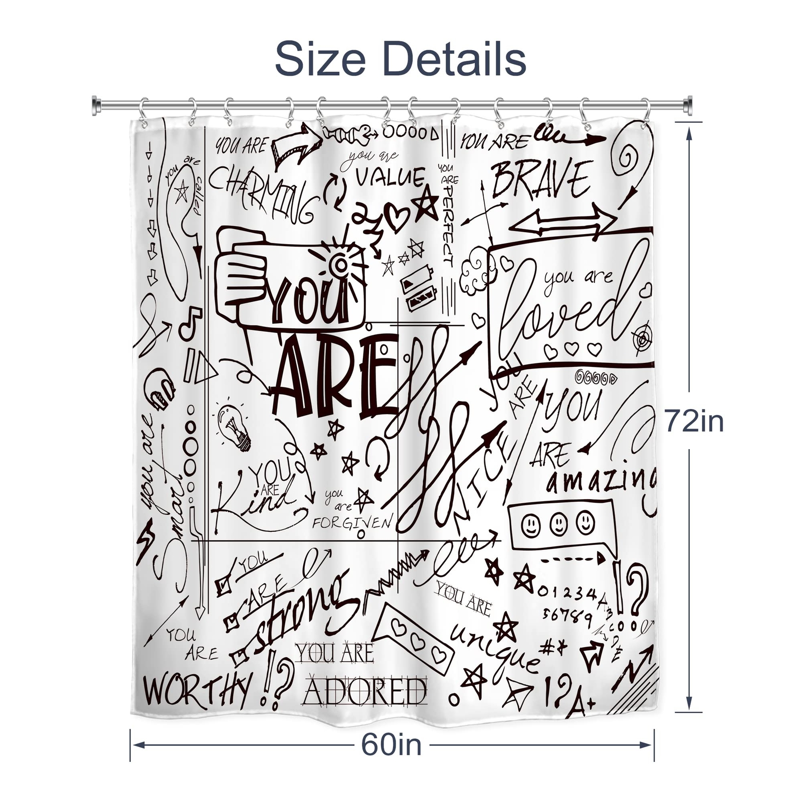 Teen Shower Curtain for Kids Funny Quotes 60Wx72L Inch Boys Girls Black White...