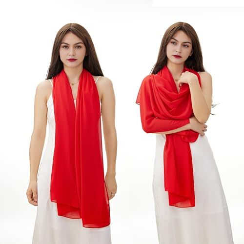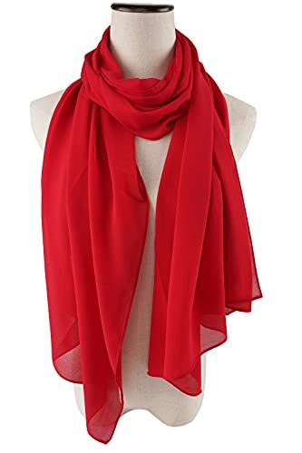 как выглядит for Women Lightweight Breathable Solid Color Soft Chiffon Long Fashion Red фото