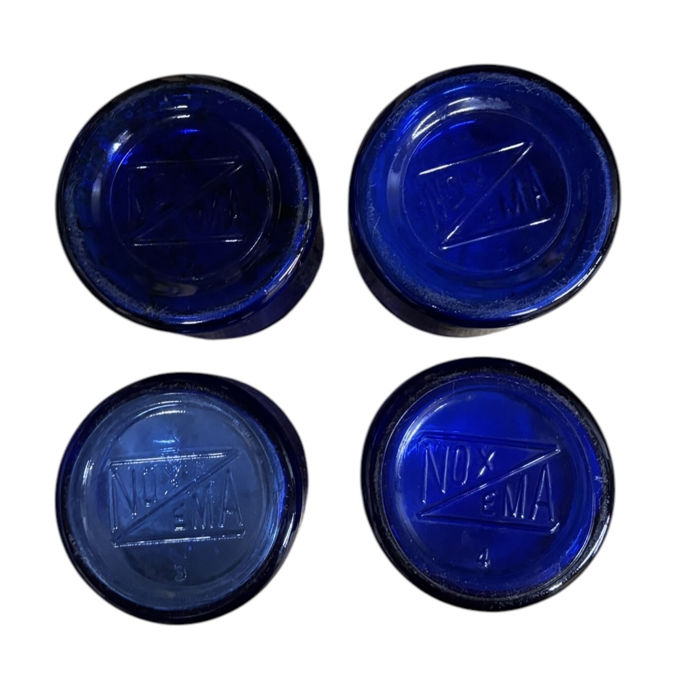 • Cobalt Blue Noxzema Jars Antique with Lids Vintage Set of 4