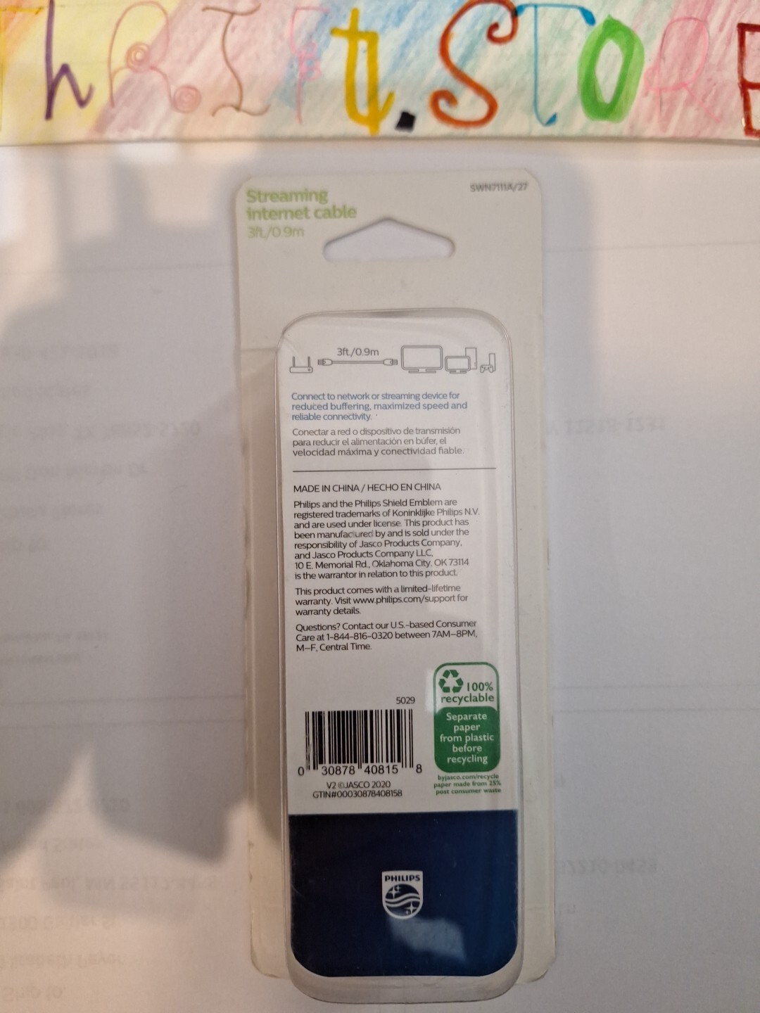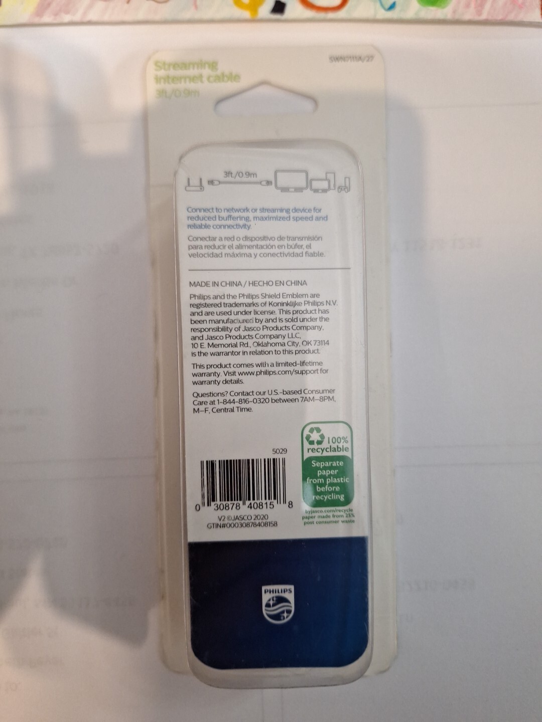 Philips 3ft Streaming Internet Cable Cat5e - 100MB/Sec