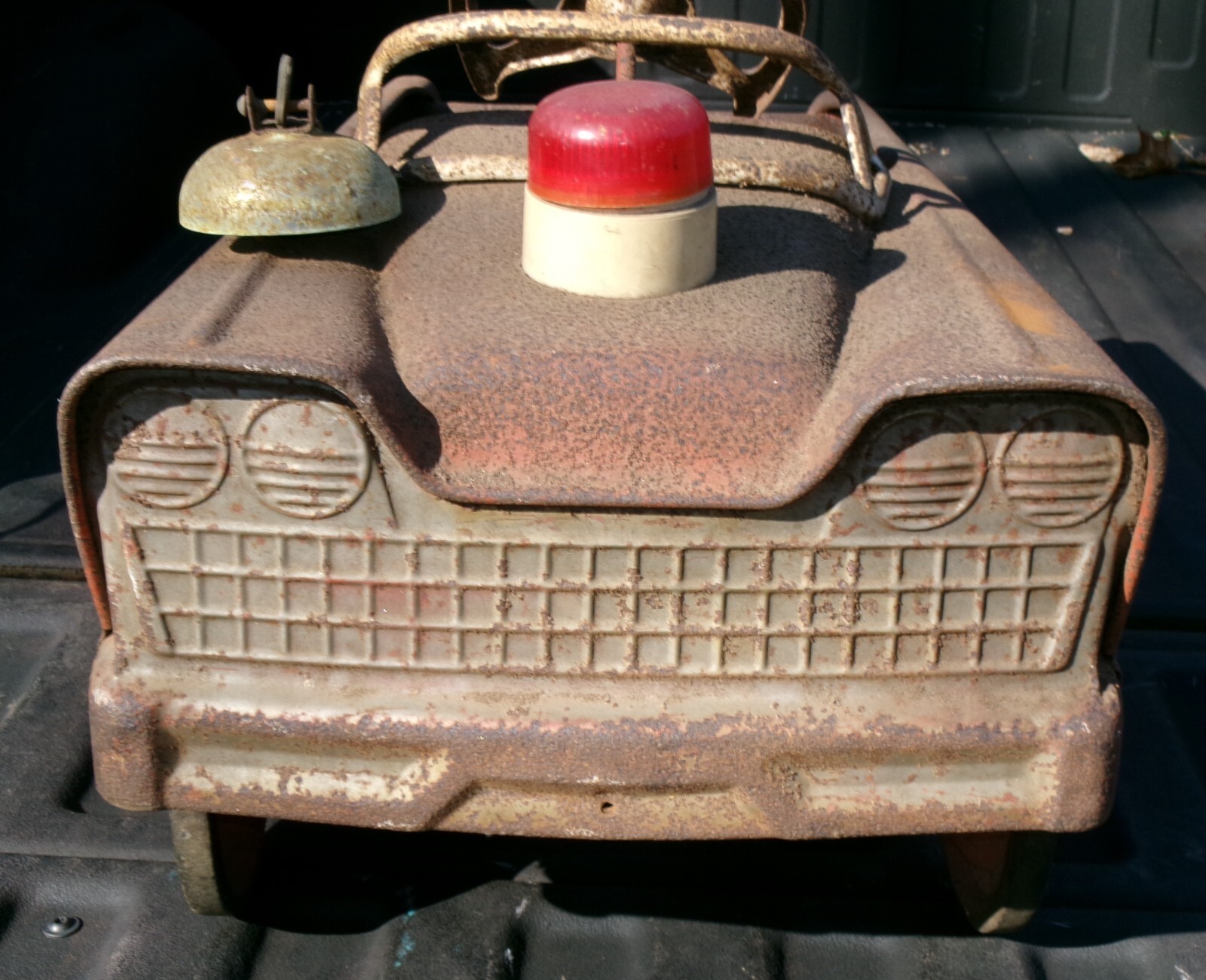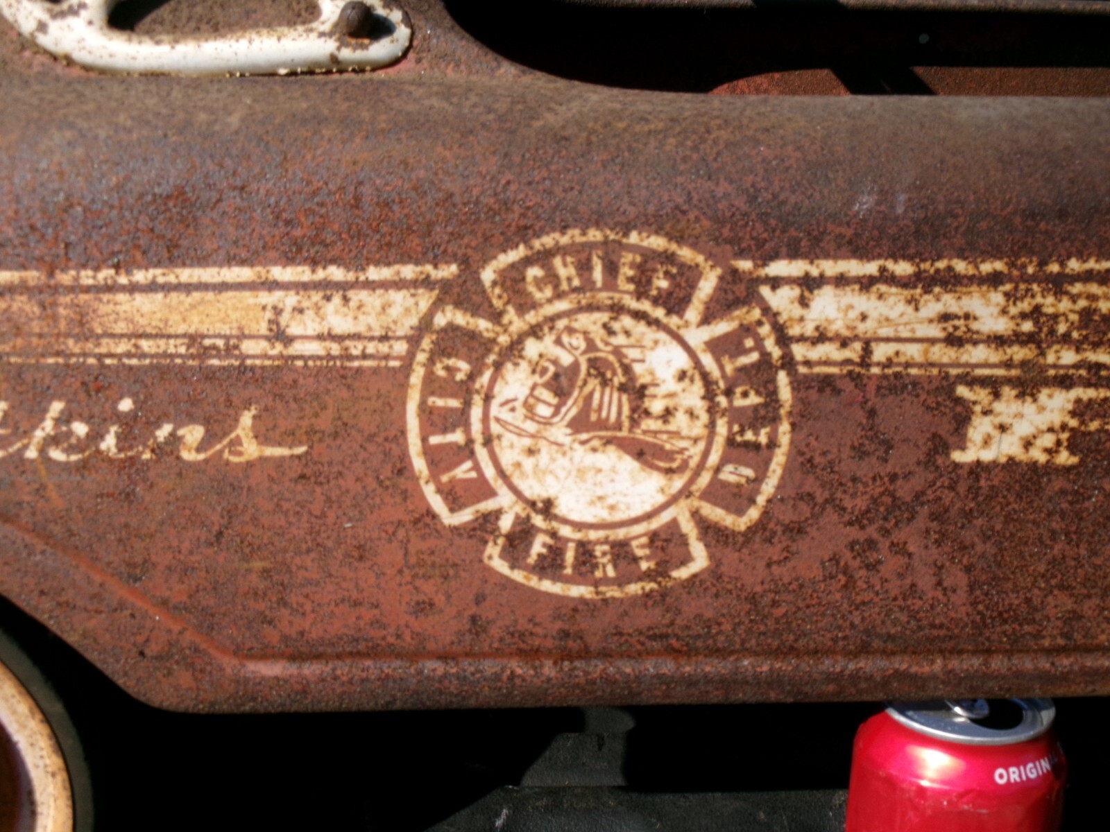 ANTIQUE RED METAL ATKINS CITY FIRE DEPARTMENT CHIEF BOY TOY TIRE PEDAL CAR BELL