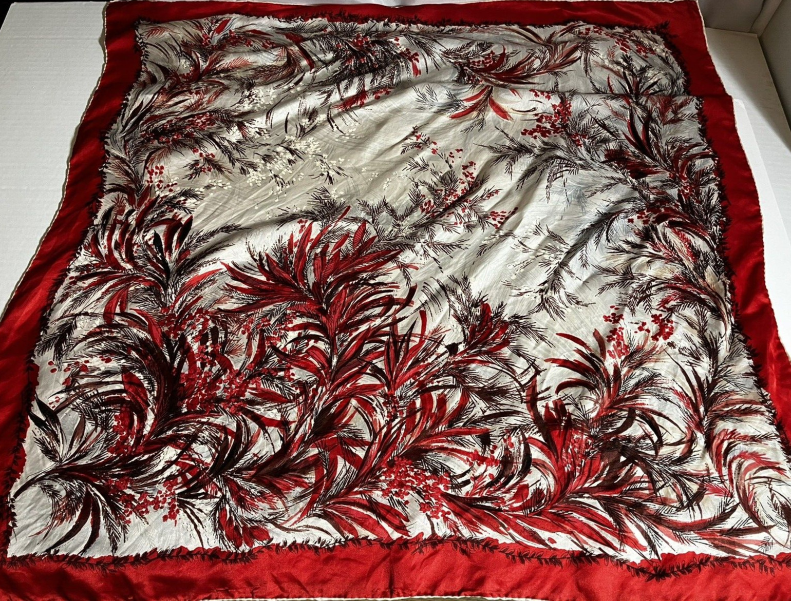 Vintage Square Scarf 100 Silk Hand rolled Edges Orange White Berries Leaves