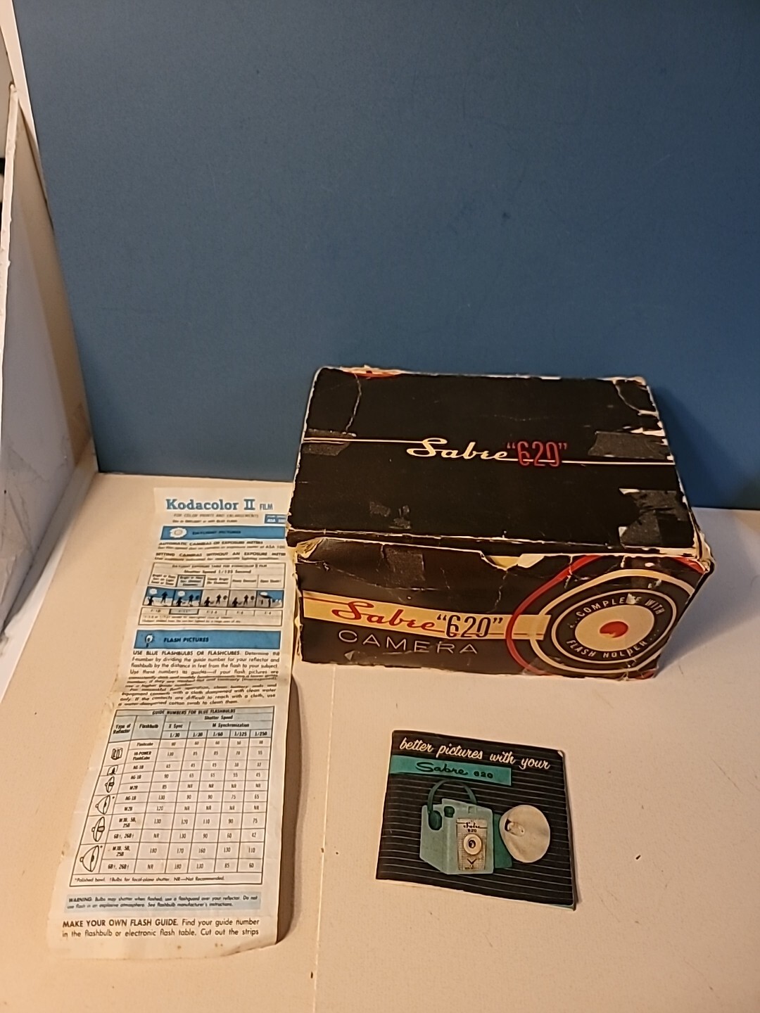 как выглядит Vintage Mid Century SABRE"620" Camera With Orig Flash Holder, Box Instructions фото