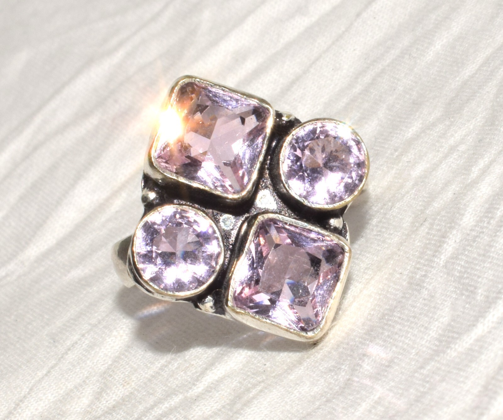 как выглядит Simulated Pink Amethyst Cut Handmade Gemstone Fashion Jewelry Ring Size 8 фото