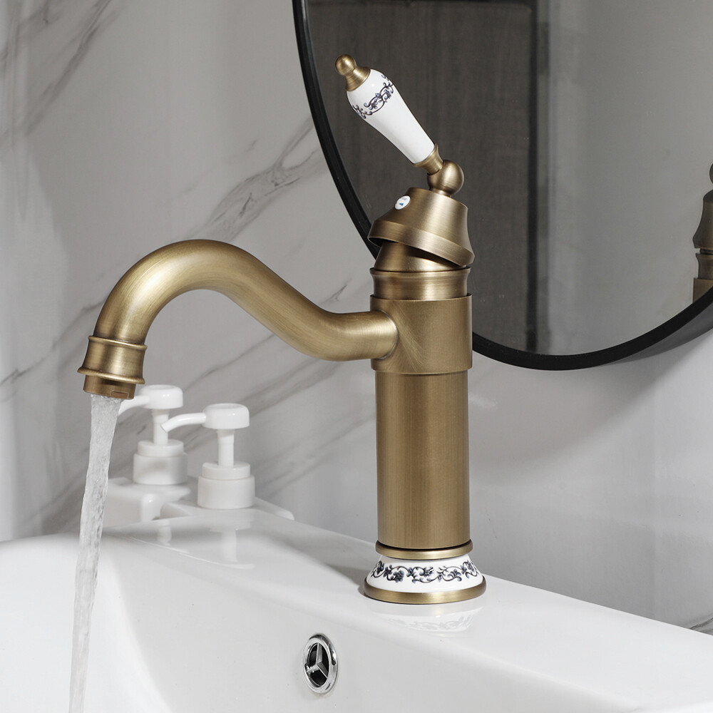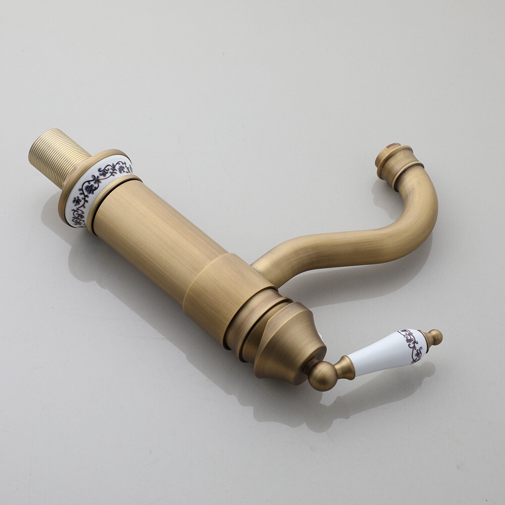Antique Brass Bathroom Sink Faucet Swivel Spout Ceramic Single Handle Mixer Tap