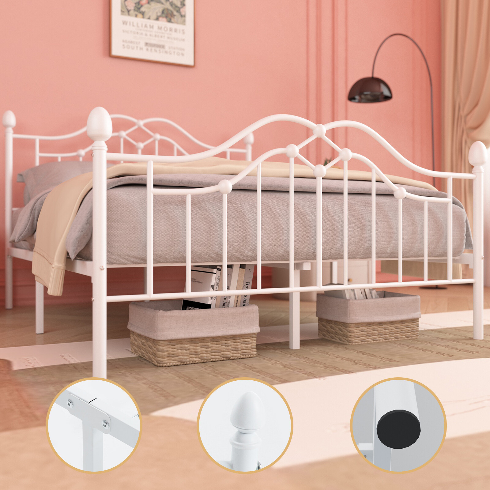как выглядит Metal Bed Frame Twin/Full/Queen with Headboard and Foorboard Under Bed Storage фото