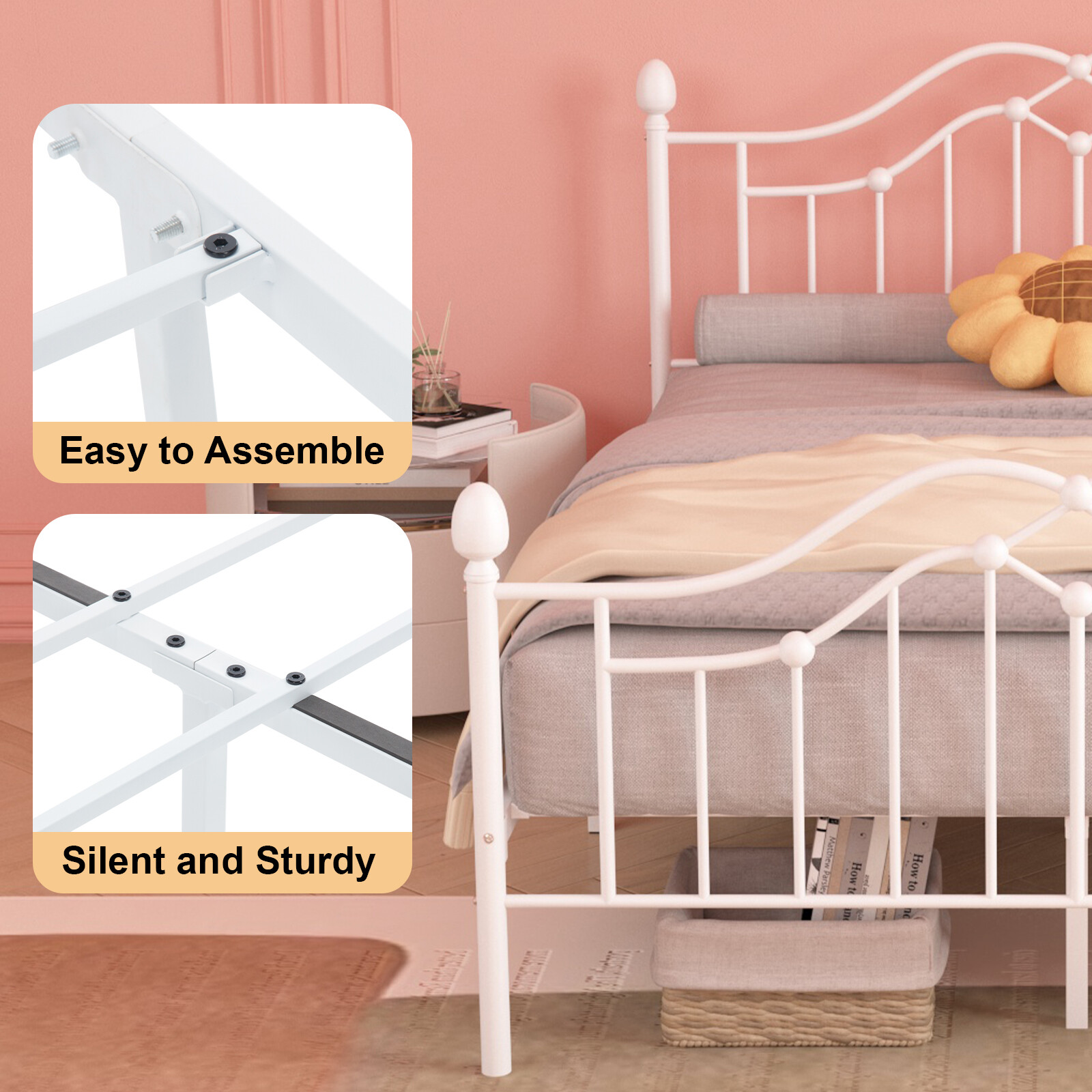 Metal Bed Frame Twin/Full/Queen with Headboard and Foorboard Under Bed Storage