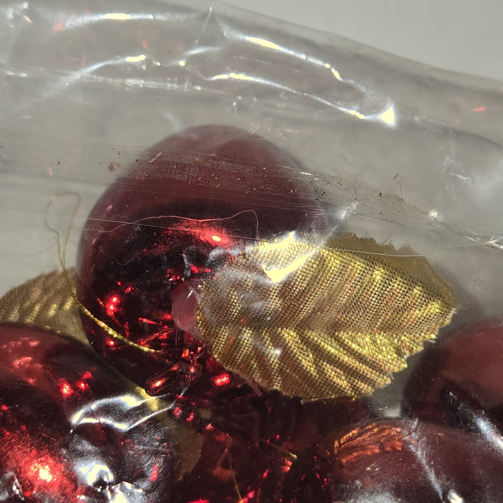 24 Pcs Red Apple Christmas Ornaments Mini Tree Baubles Pendant Gold Leaves