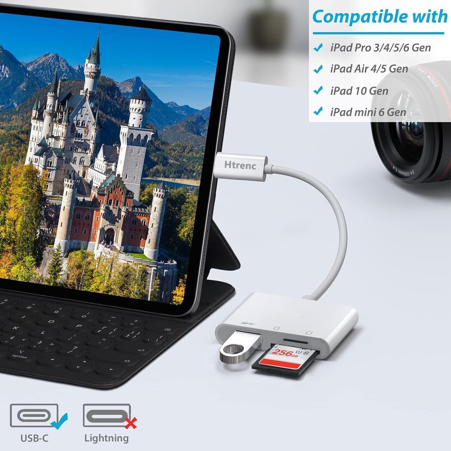Memory Card(s) Supported: 3-in-1 Type C Camera Adapter Compatible with iPad, iPhone 15, Mac