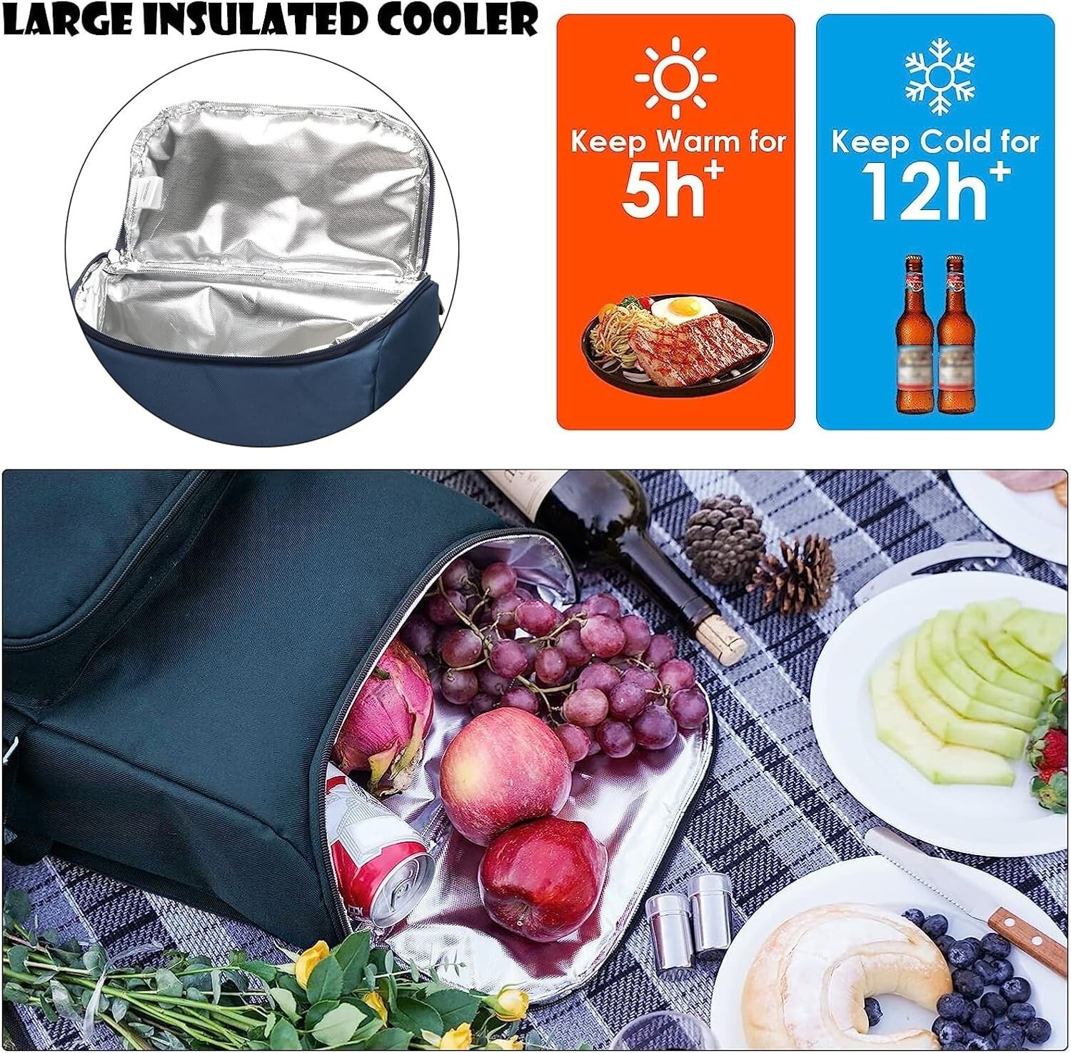 Picnic Backpack for 2 Person with Large Insulated Cooler Bag, Picnic Basket S...
