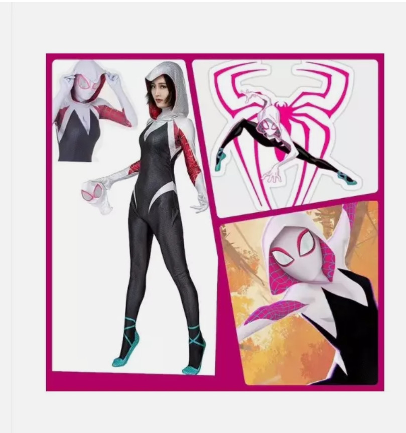 Spider-Gwen Stacy Jumpsuit Spider-Woman Zentai Tight Cosplay Costume 155-165cm