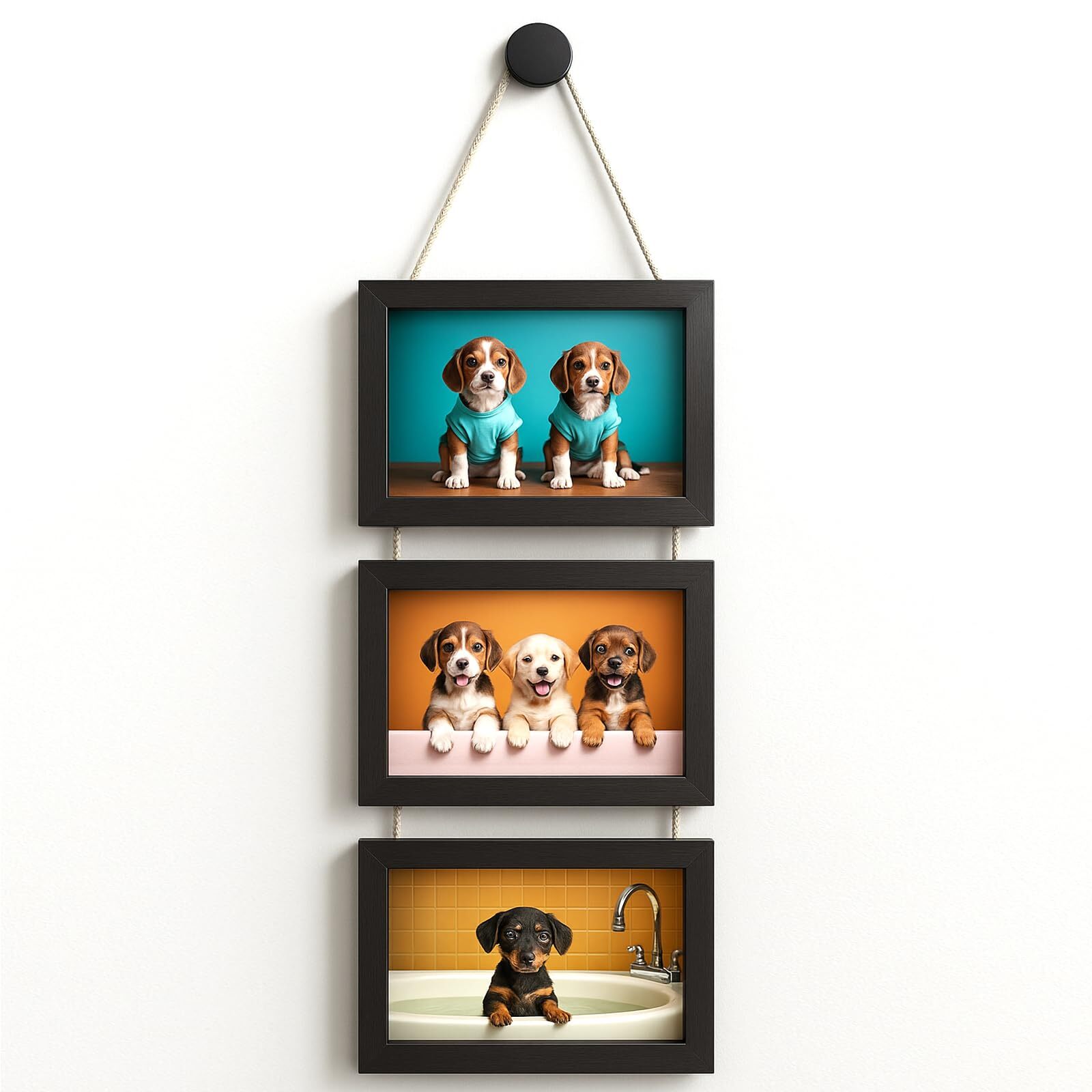 4x6 Inch Hanging Picture Frames with 3 Openings Rustic Wood Wall Photo Frame
