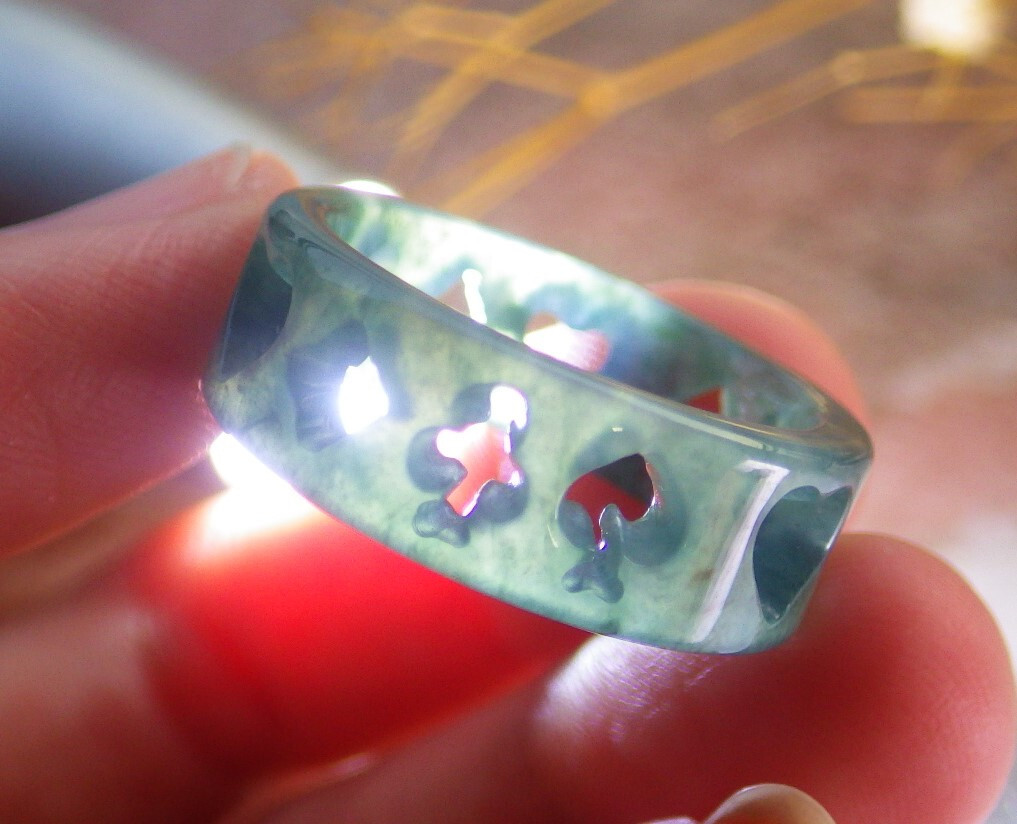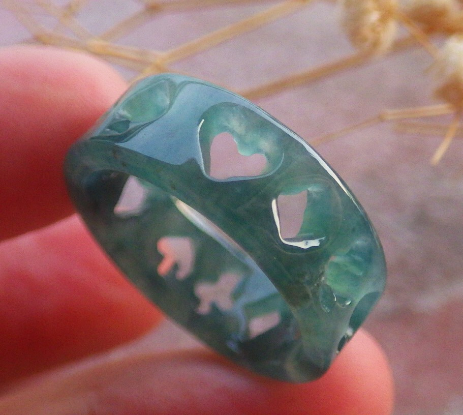 как выглядит Video Certified Icy Green Natural A JADE Jadeite Heart RING USA. 9  689238 фото