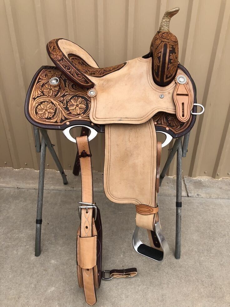Best quality western leather barrel rough out saddle with free matching tack set