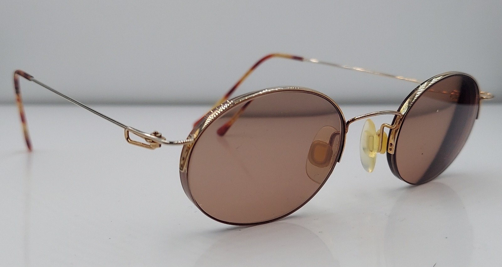 как выглядит Vintage Tortoise Gold Oval Metal Half-Rim Sunglasses Japan FRAMES ONLY фото