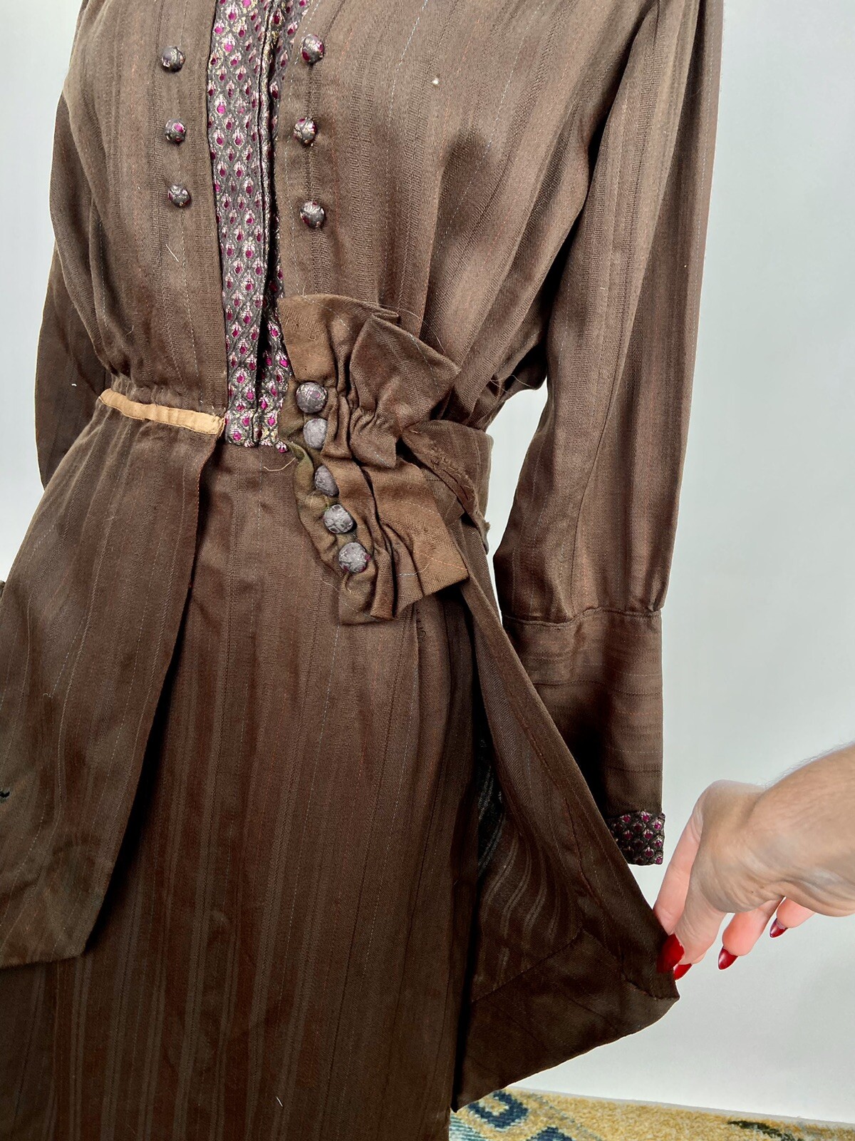 Antique Winter Wool Brown 2-Piece Victorian Bodice Skirt Purple Details As Is