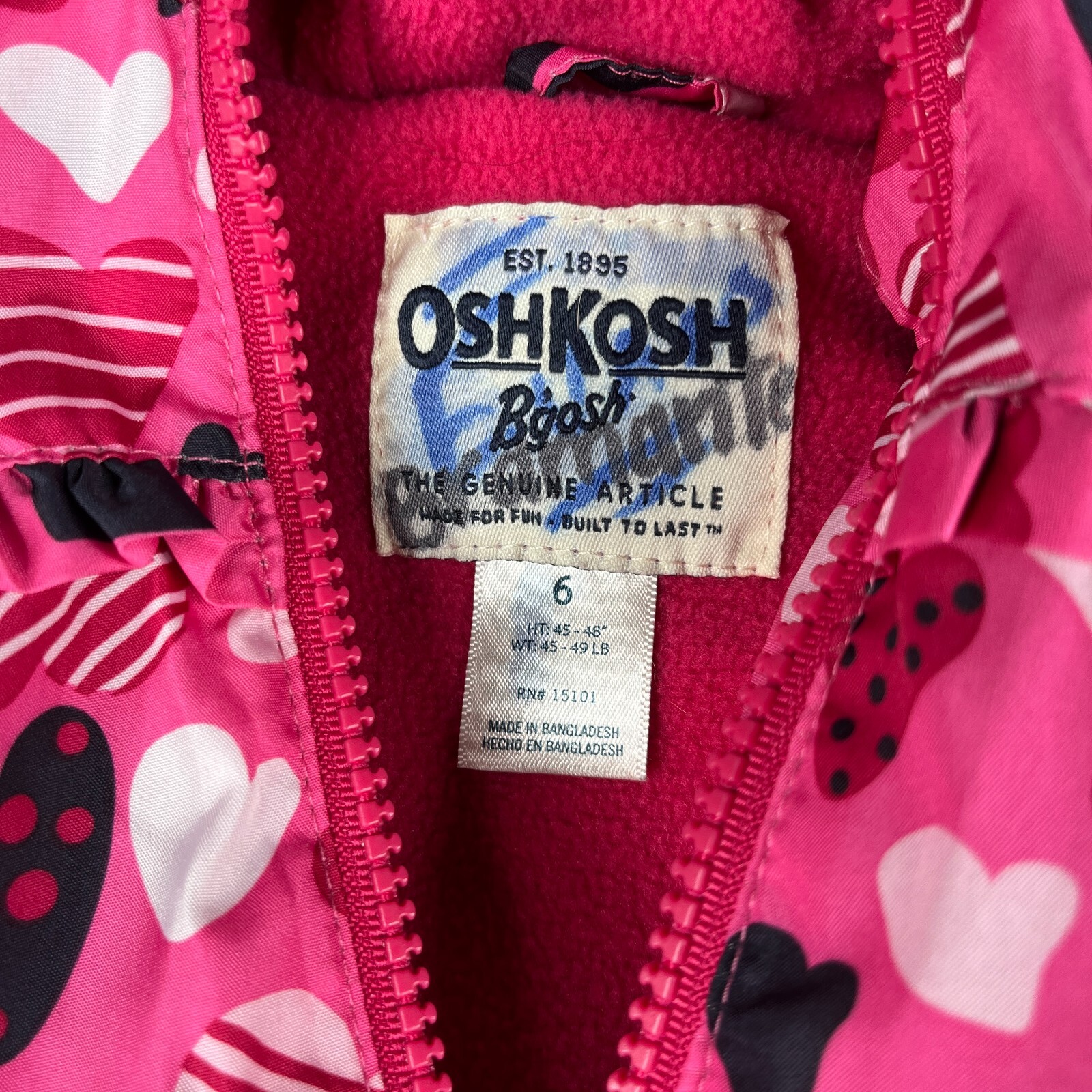 как выглядит OshKosh Bgosh Fleece Lined Jacket Hooded Youth KIds Size 6 Pink Hearts Print фото