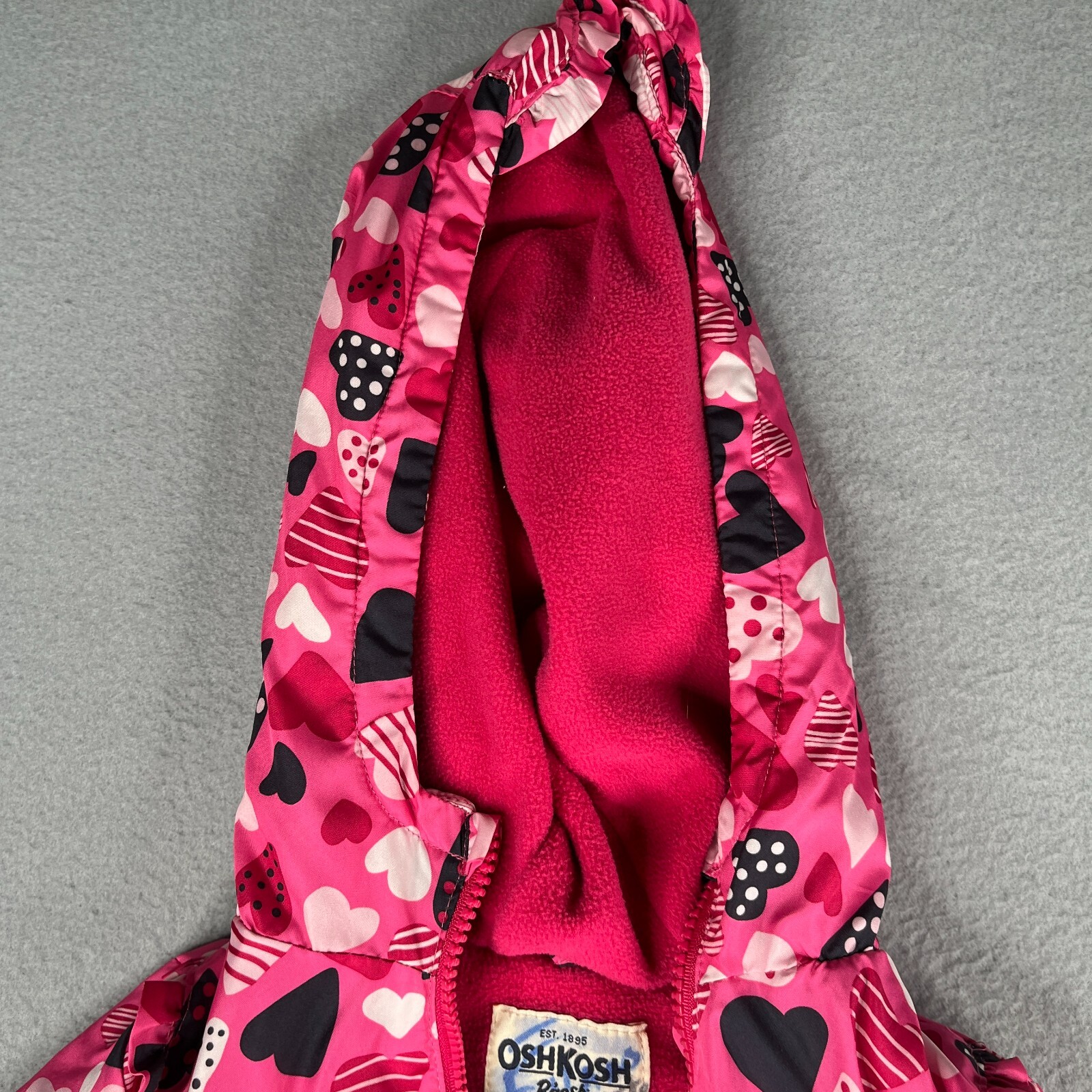 OshKosh B'gosh Fleece Lined Jacket Hooded Youth KIds Size 6 Pink Hearts Print