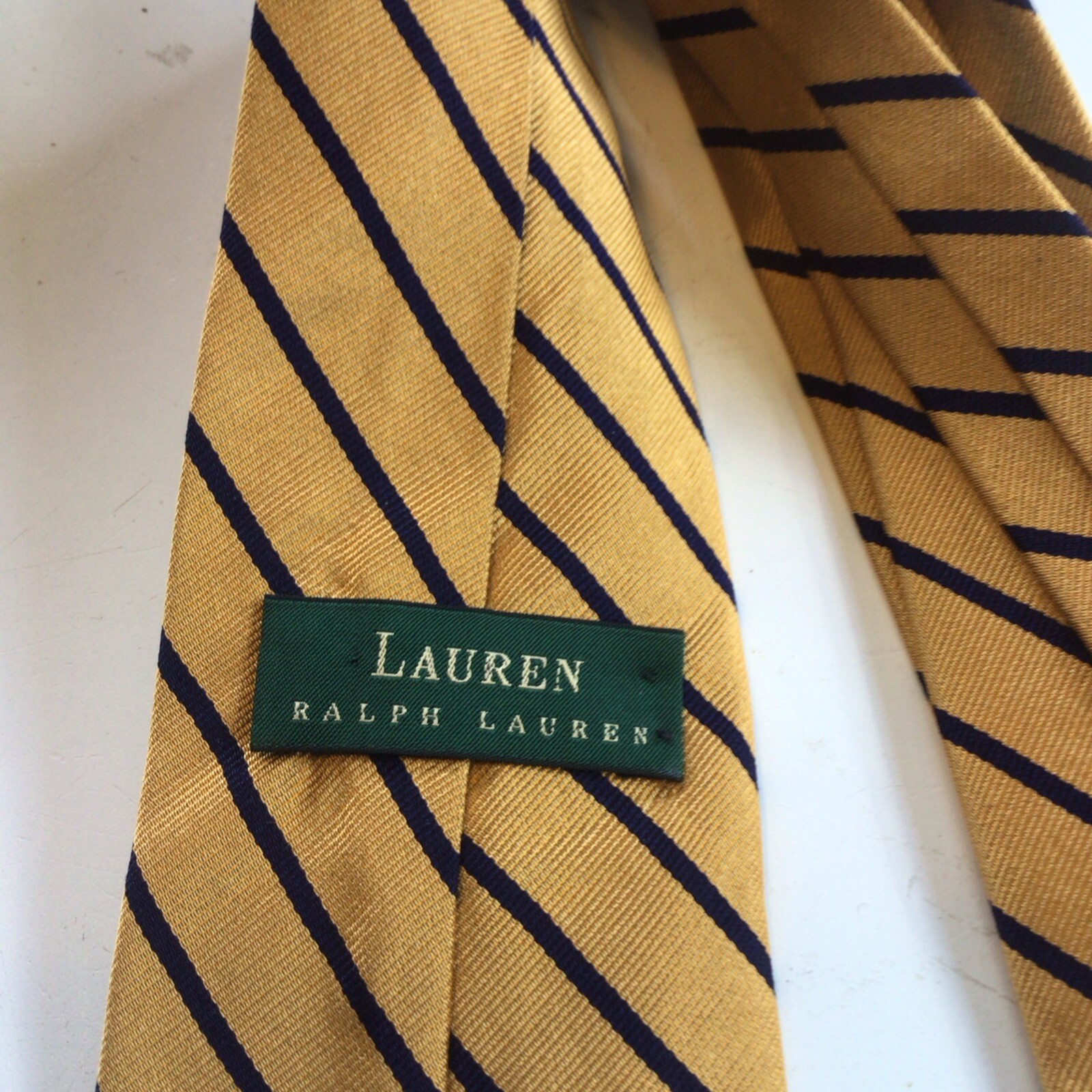 как выглядит Lauren/Ralph Lauren Gold w/Navy Stripes Silk Necktie фото