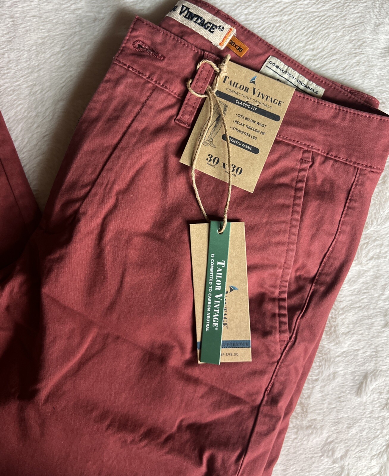 Tailor Vintage Pants 30x30 Mens Classic Fit Stretch Fabric Canyon Red Chino NWT