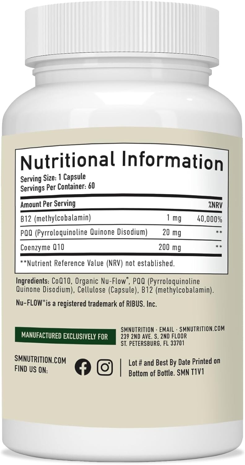 SM Nutrition PQQ Supplement 20mg Mitochondrial Biogenesis Energy Optimizer 60c