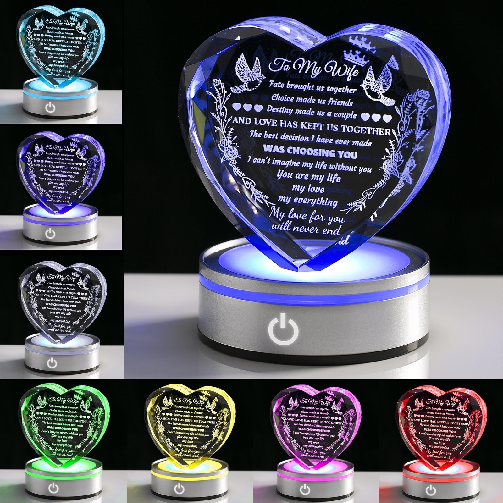 Gifts for Wife Crystal with Colorful LED Base, Anniversary Birthday Gifts for...