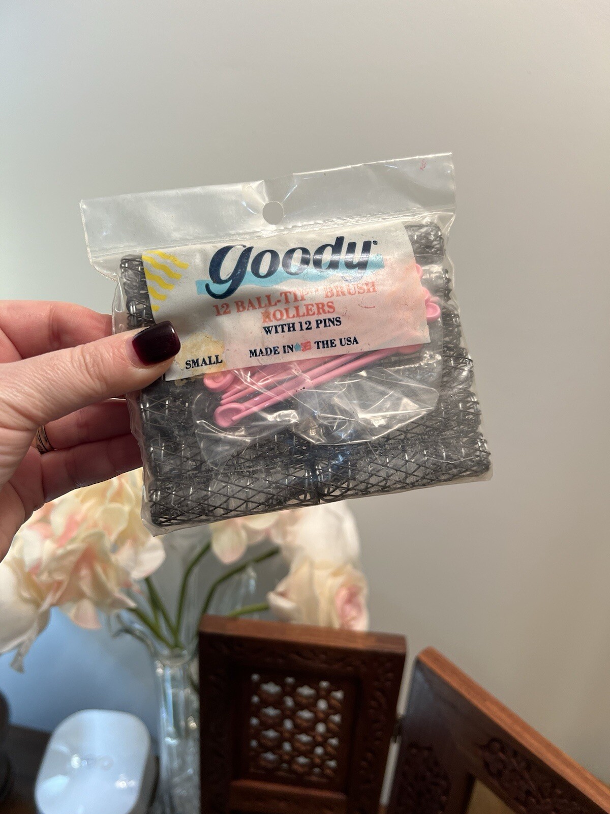 NIP Goody 12 Ball Tip Brush Rollers Small 1989 Vintage Pink Pins USA Made