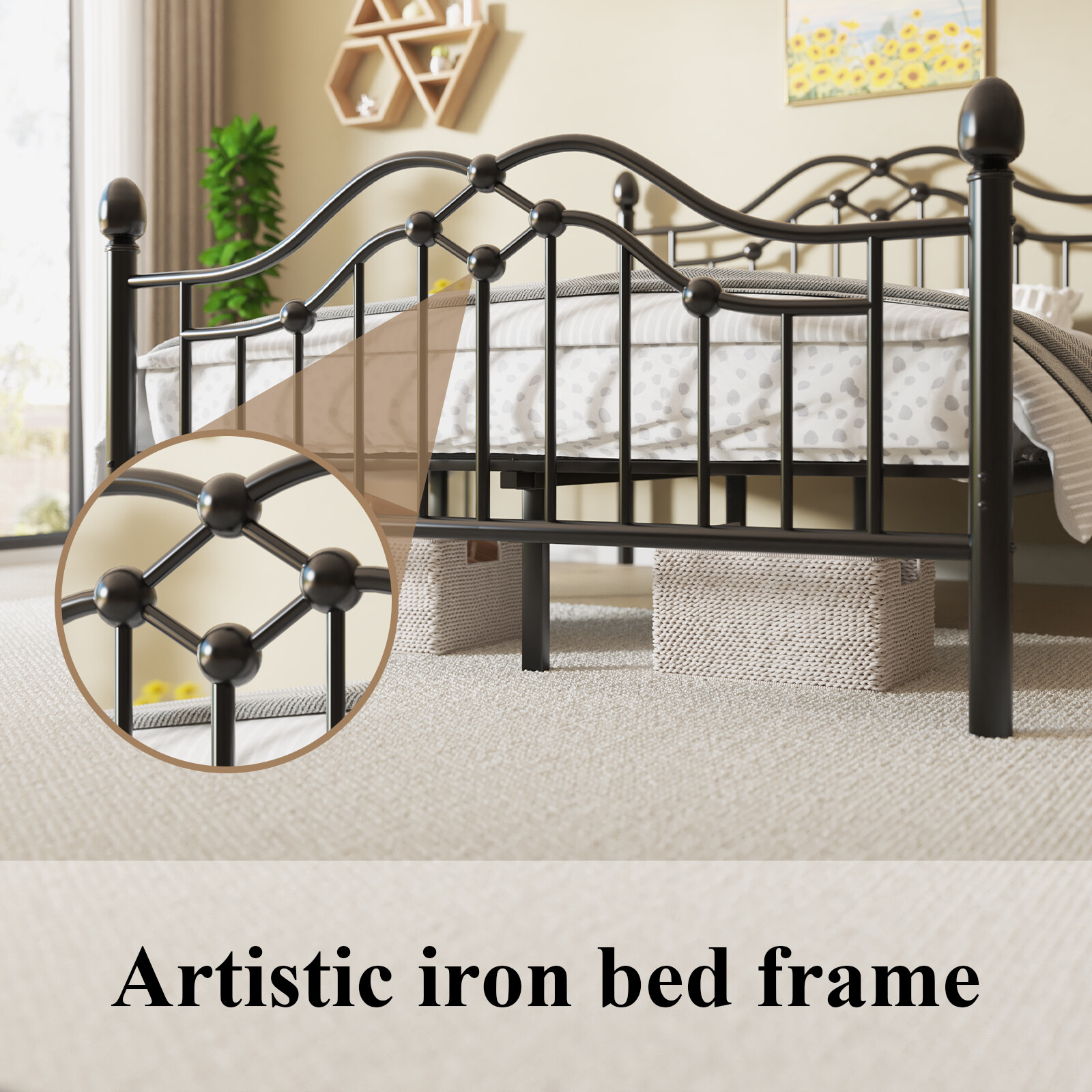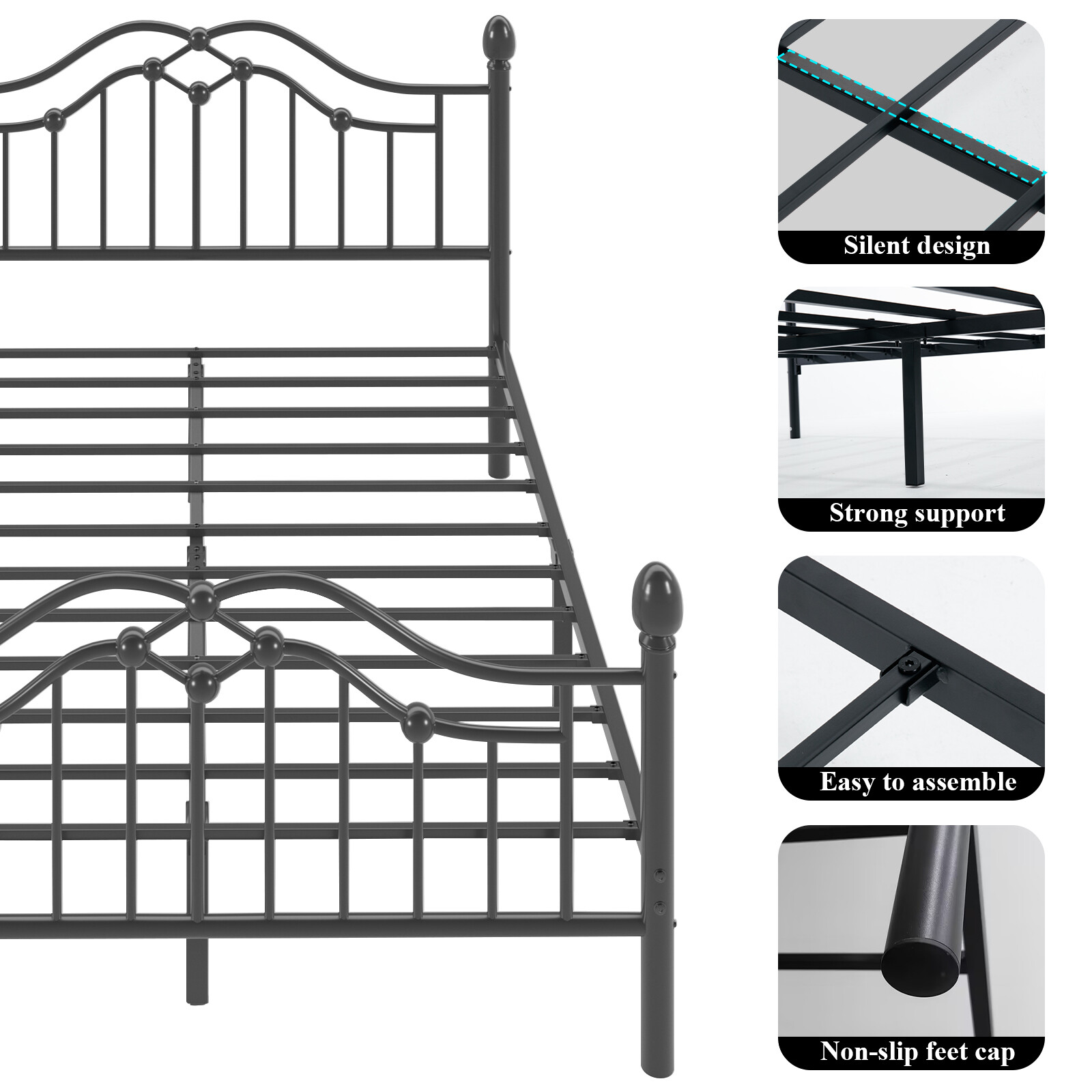 как выглядит Metal Bed Frame Twin/Full/Queen with Headboard Footboard фото