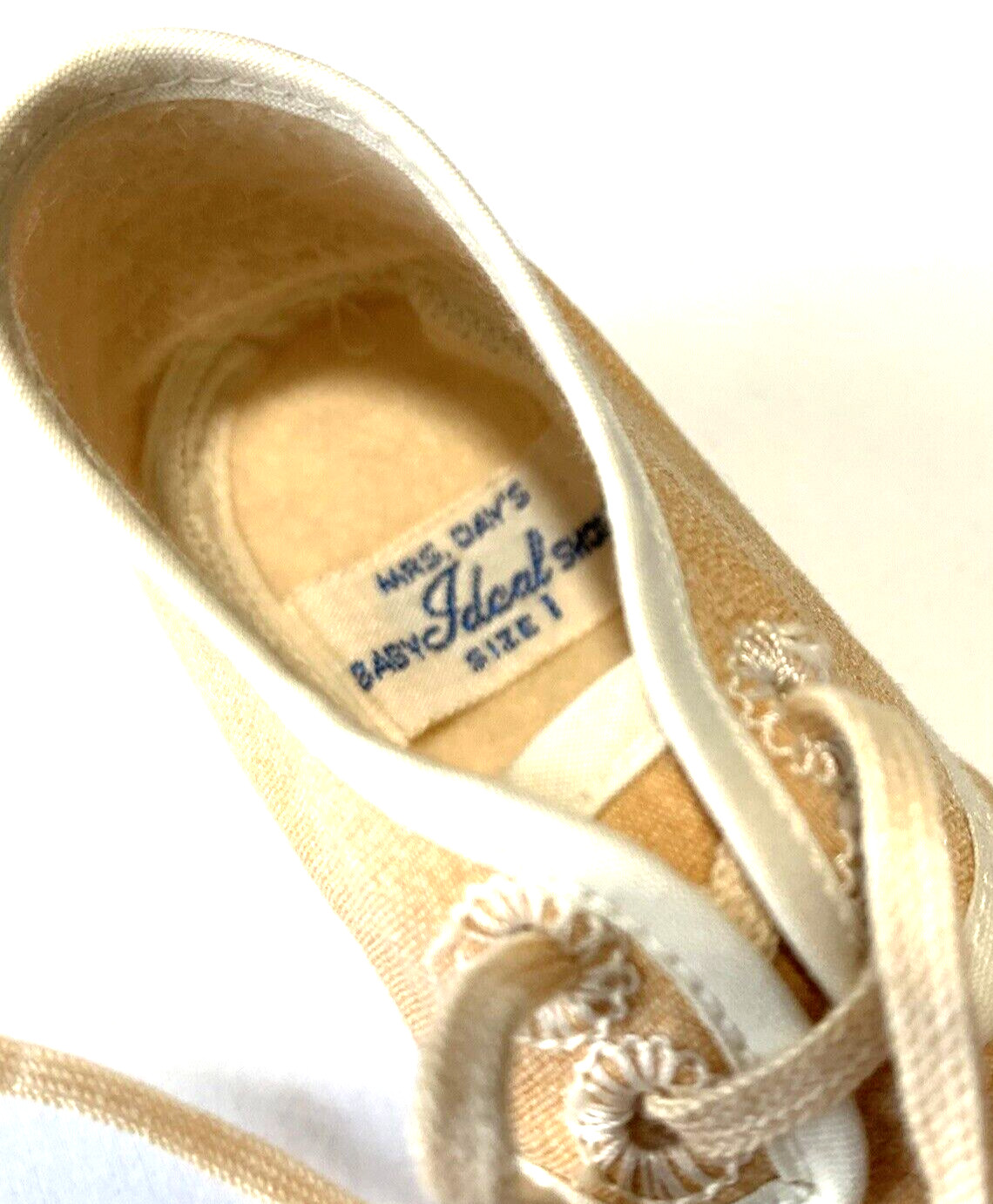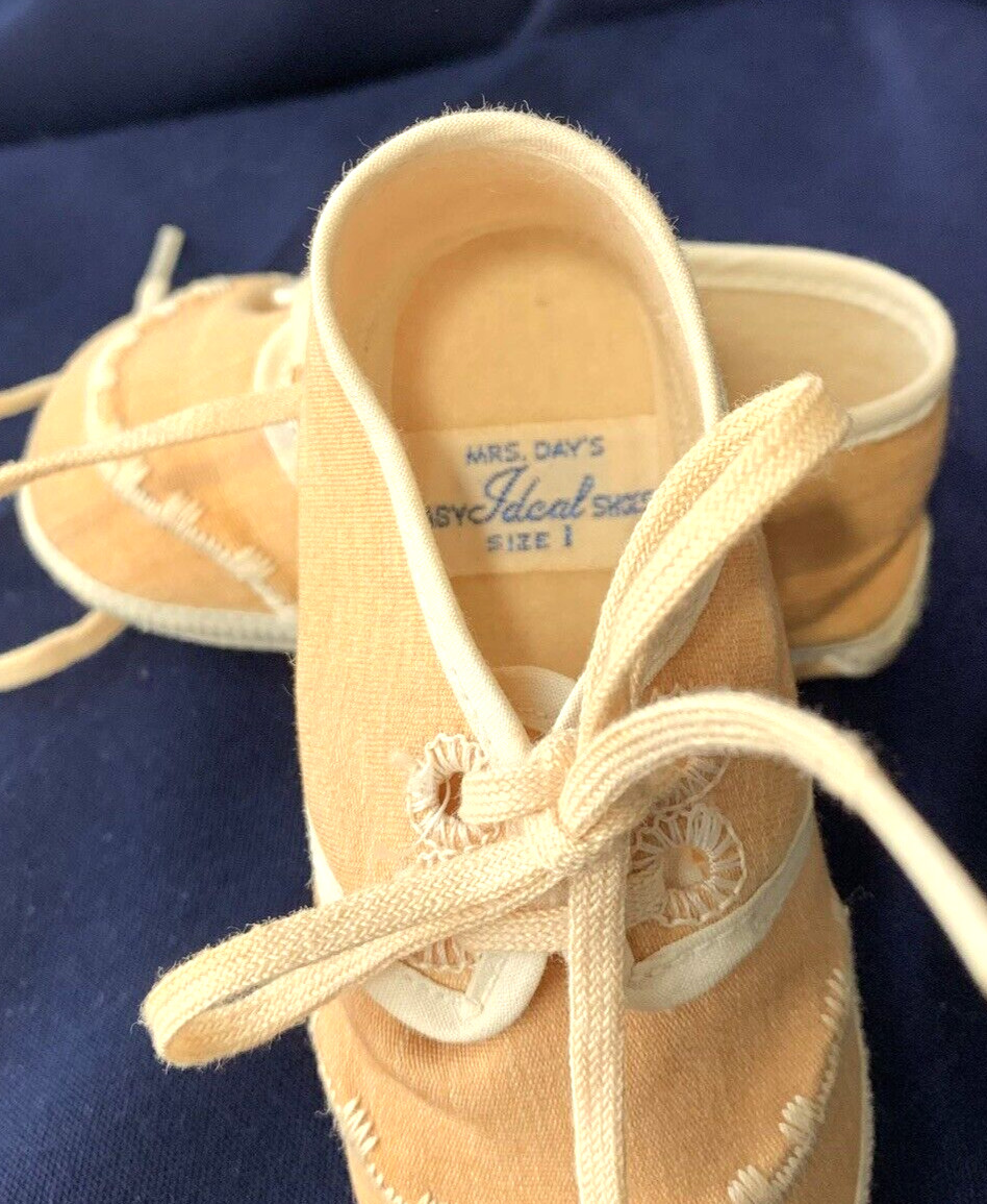 Vintage MRS. DAY S Ideal Baby Shoes Size 1 Lace up Peach/White color
