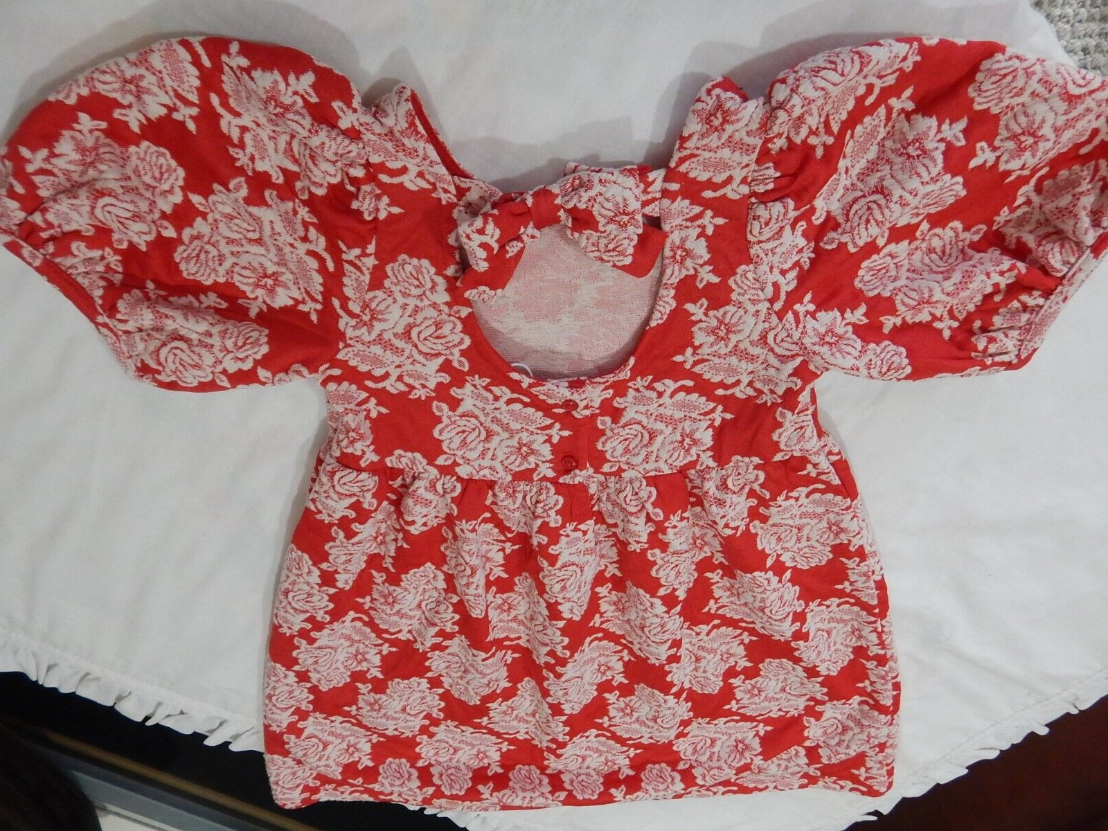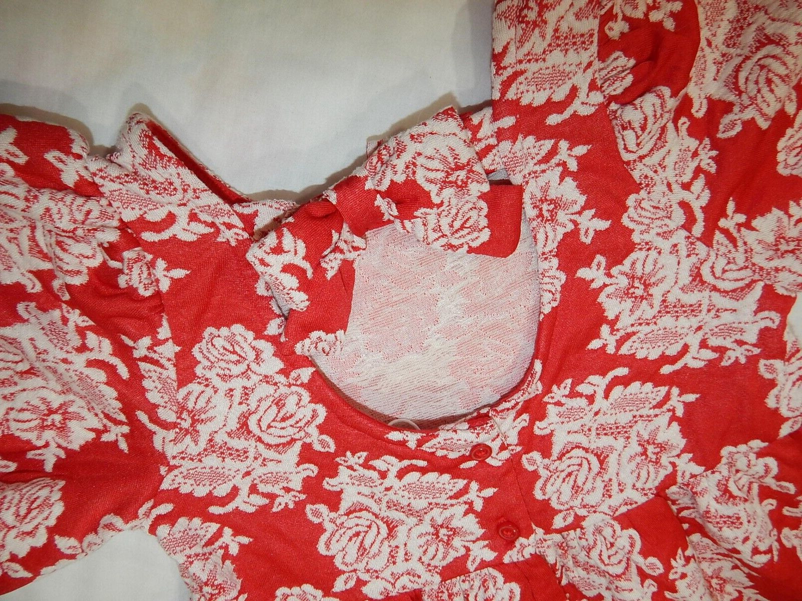 как выглядит Janie and Jack Girls 6 Red Floral BRADBURY Dress Back Bow Puff Sleeves VALENTINE фото