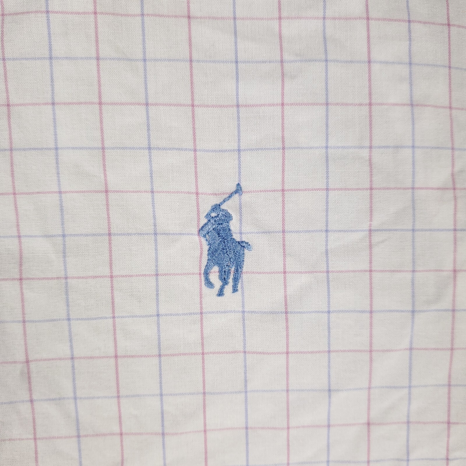 Ralph Lauren Shirt Size 16.5 White Red Blue Check Dress Button Up Long Sleeve