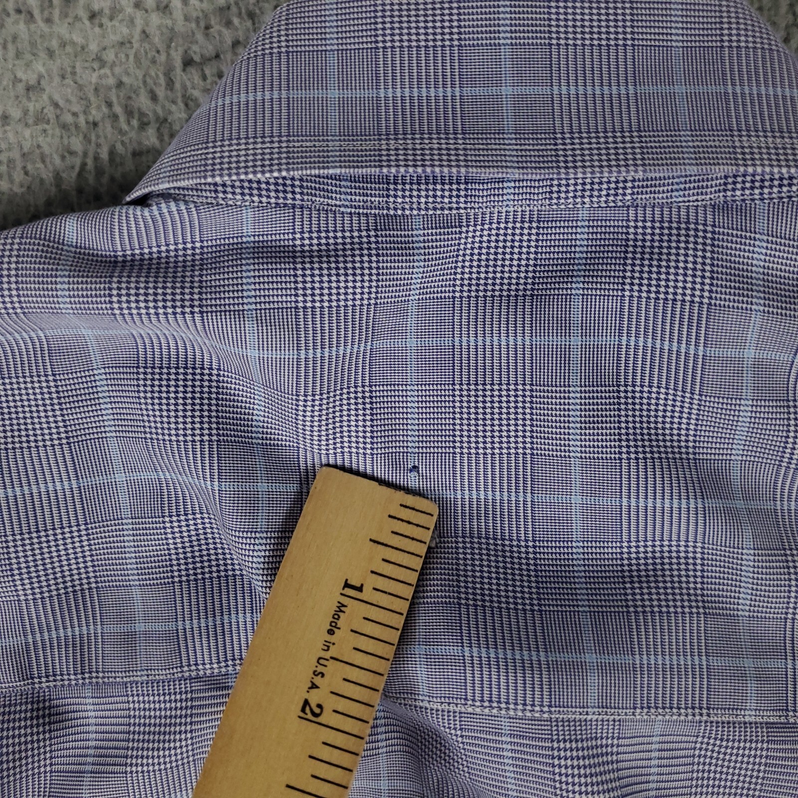 как выглядит David Donahue Shirt Mens Size 16 Blue Plaid Dress Button Up Long Sleeve фото