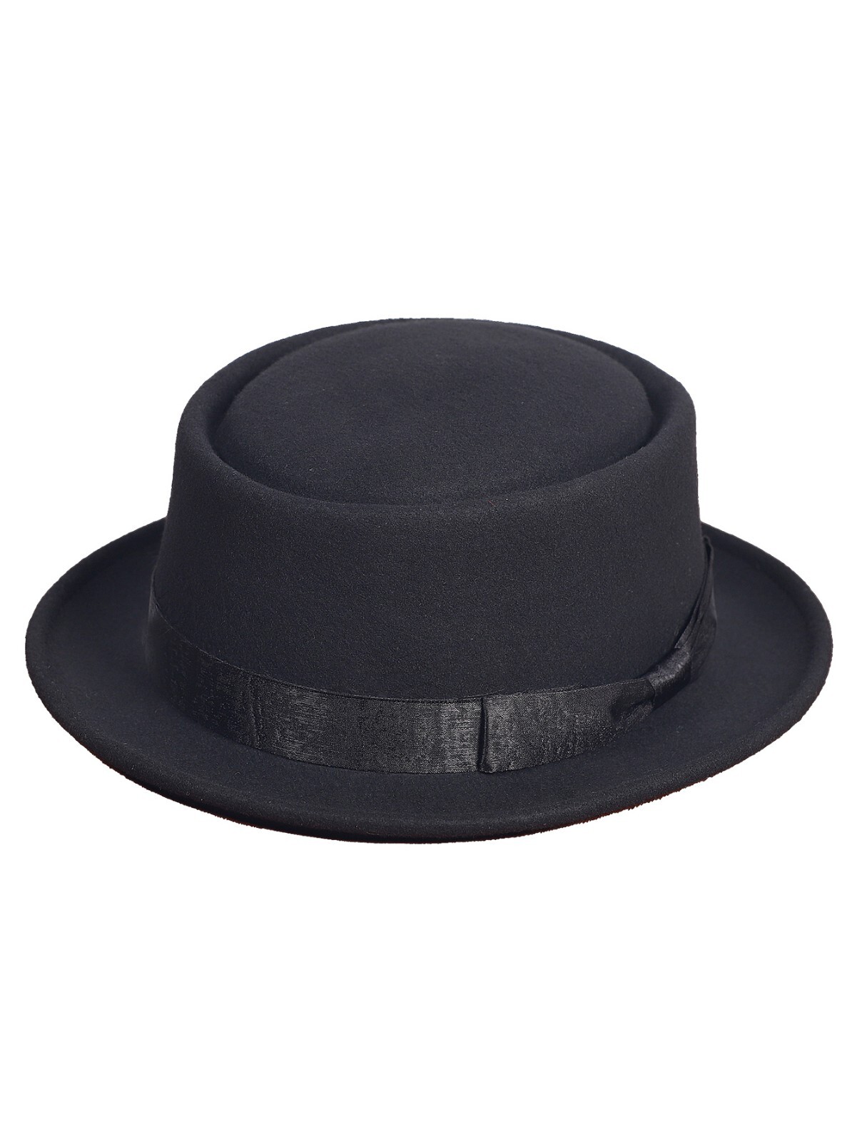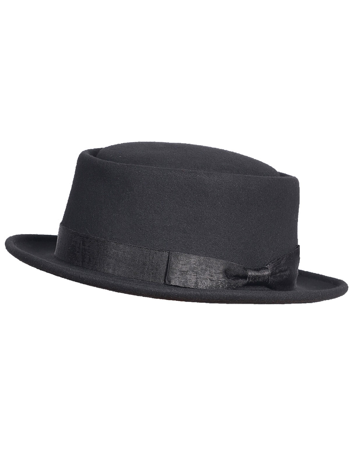 Black Wool Felt Hats With Bow Wide Brim Church Flat Top Fedora Hat For Men Women