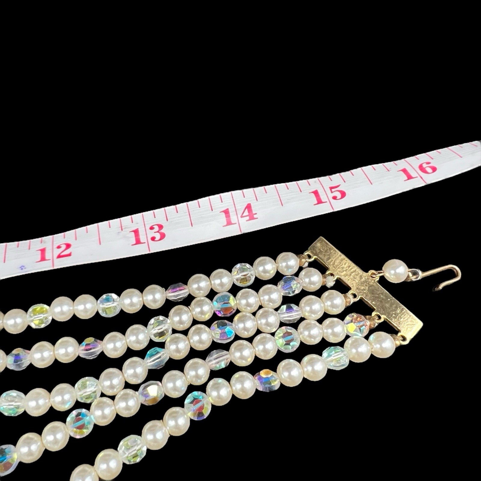 Vintage 5 Strand Beaded Choker Necklace Faux Pearl AB Beads Hook Closure MCM