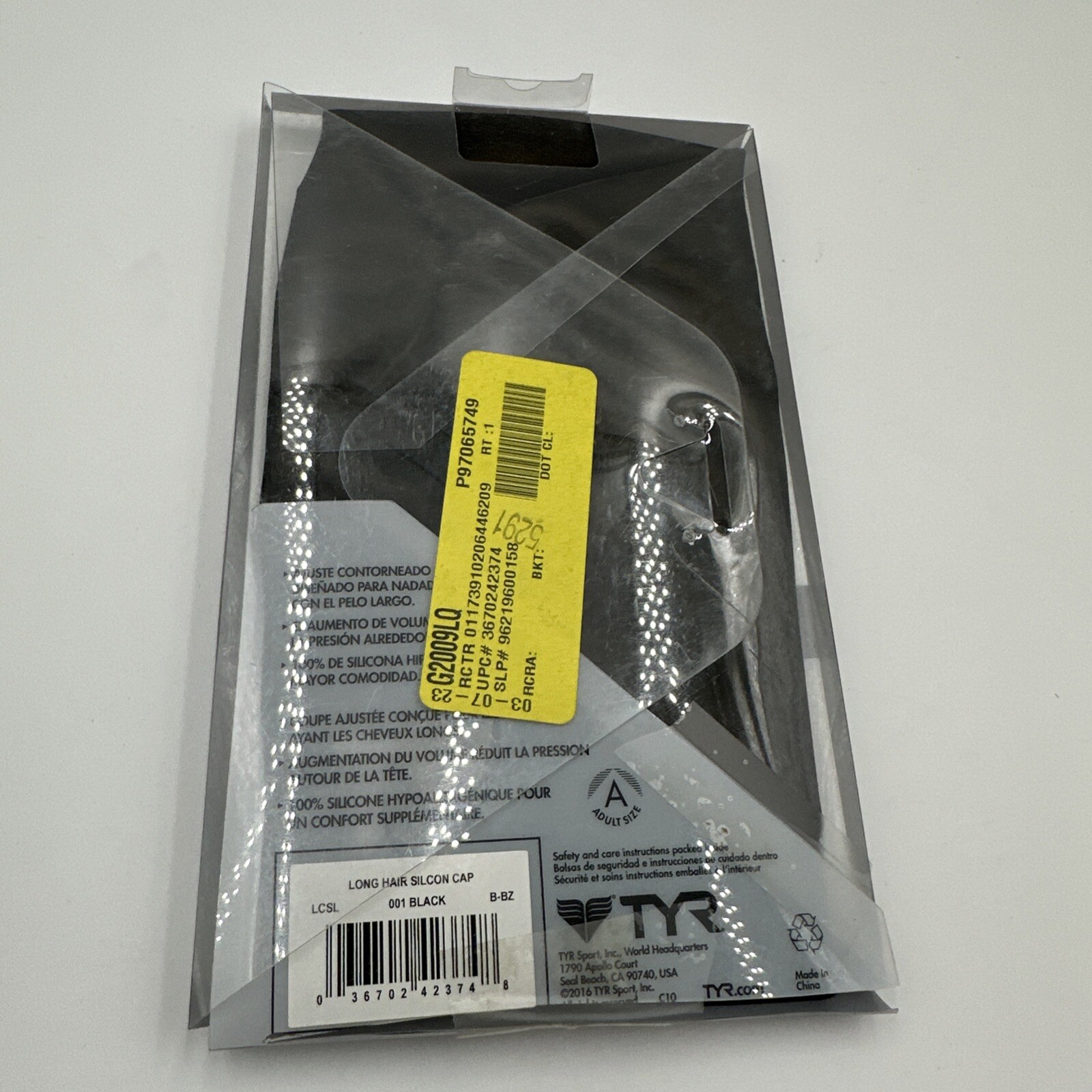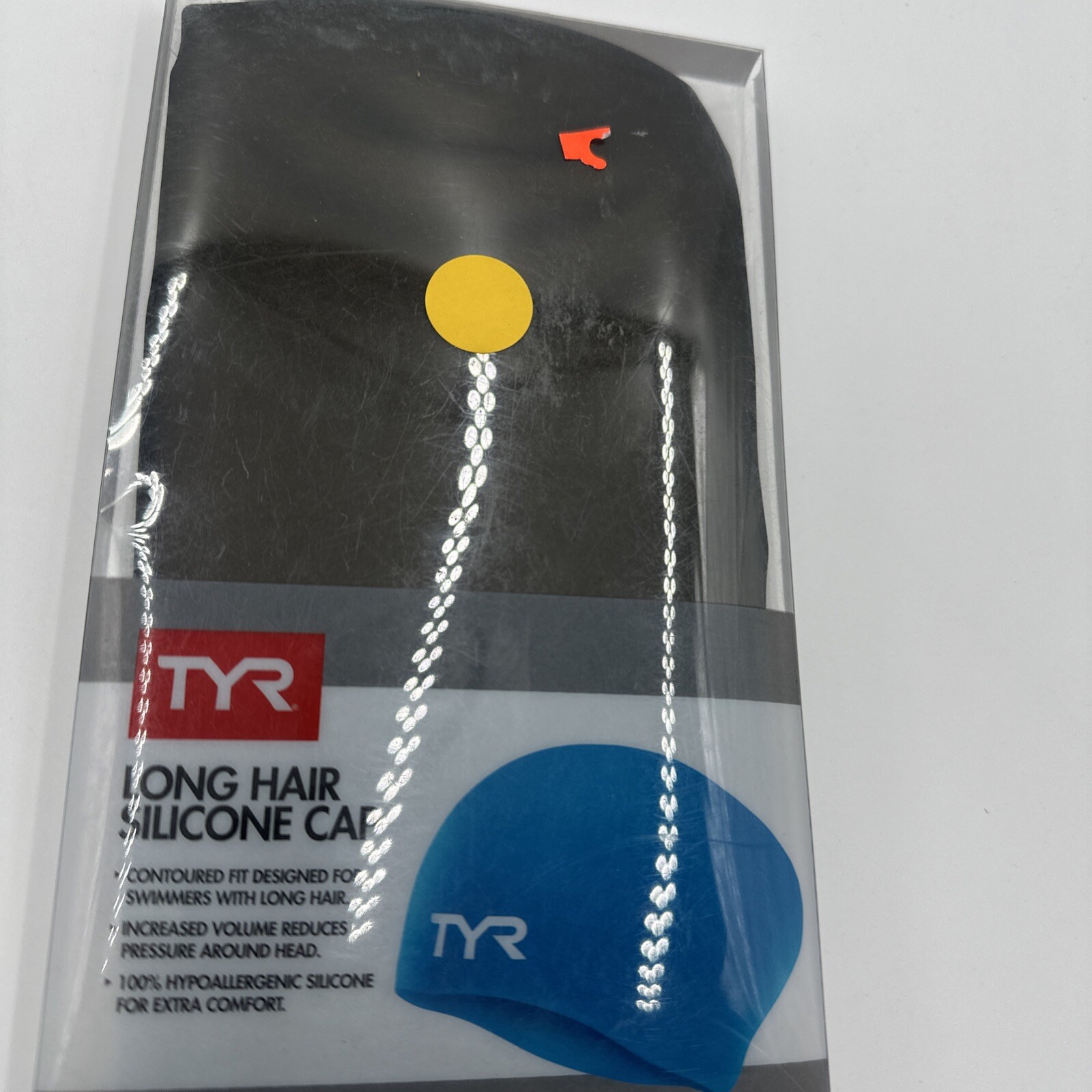 TYR Sport Long Hair Silicone Swim Cap- Black Contoured. New