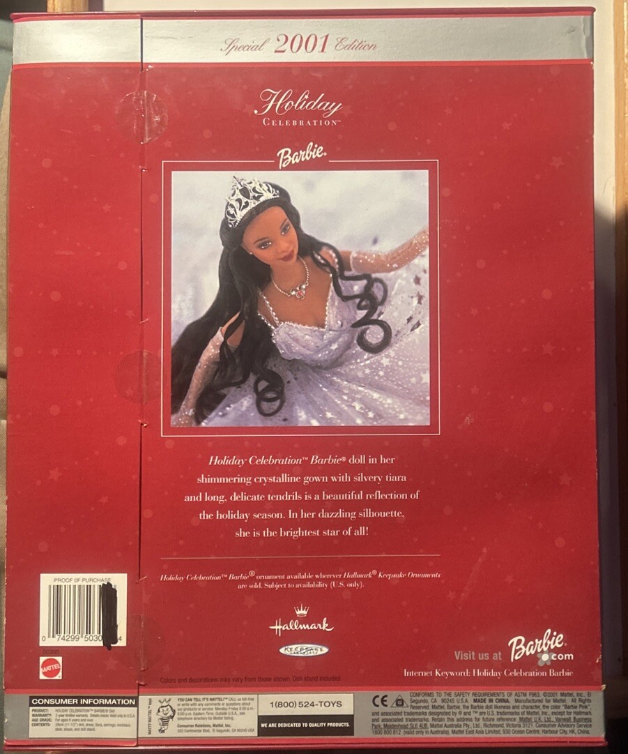 Vintage 2001 Mattel Barbie Holiday Celebration Special Edition Doll New