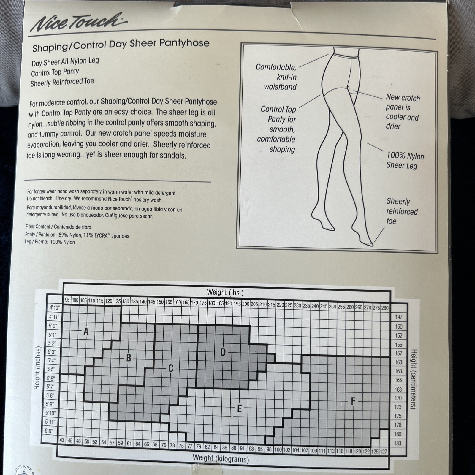 Vintage Sears Nice Touch Day Sheer Shaping/Control Top Pantyhose Navy size D NIP