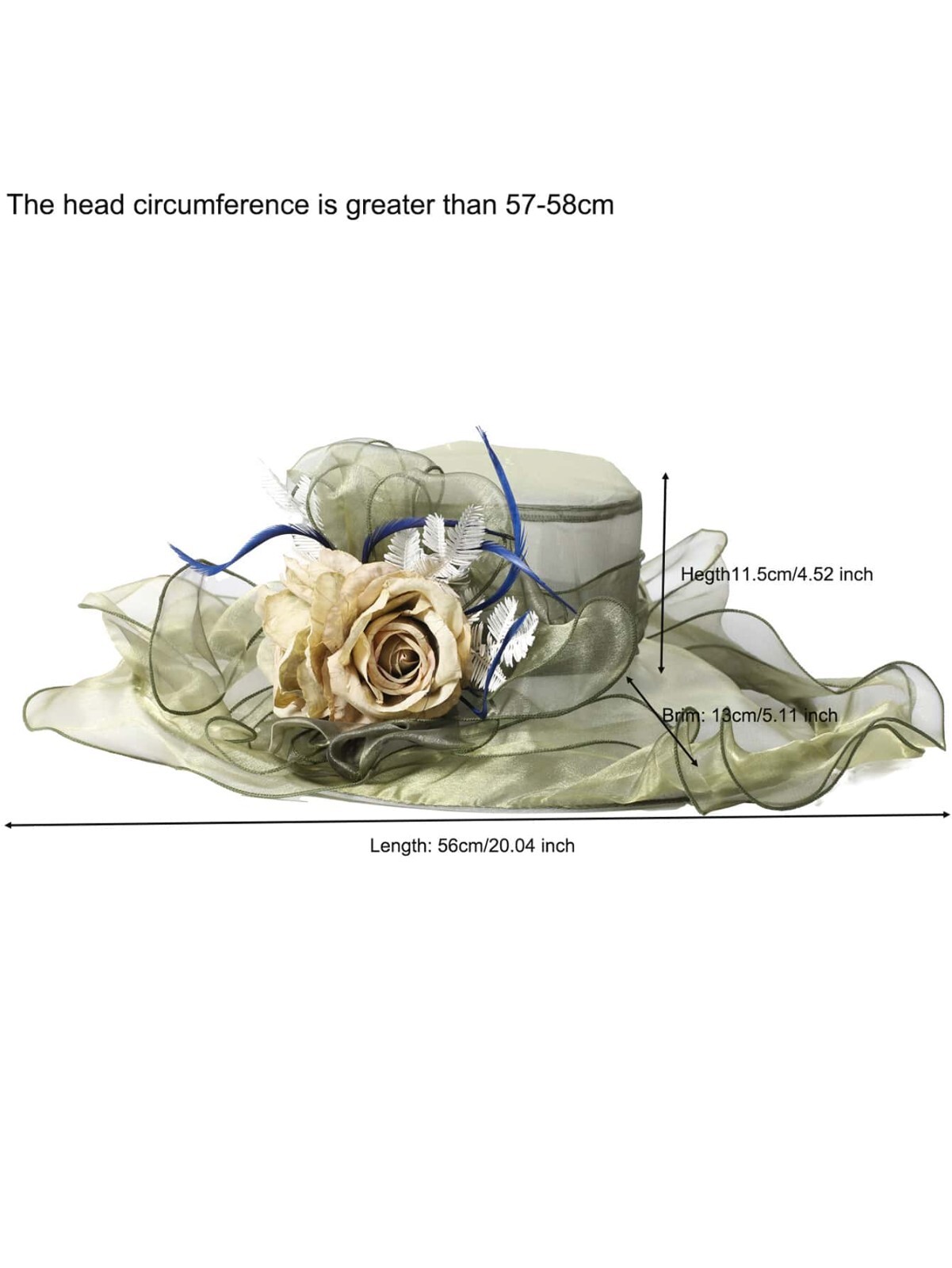 Green Organza Kentucky Derby Fascinator Hat For Women Wide Brim Flower Tea Hats