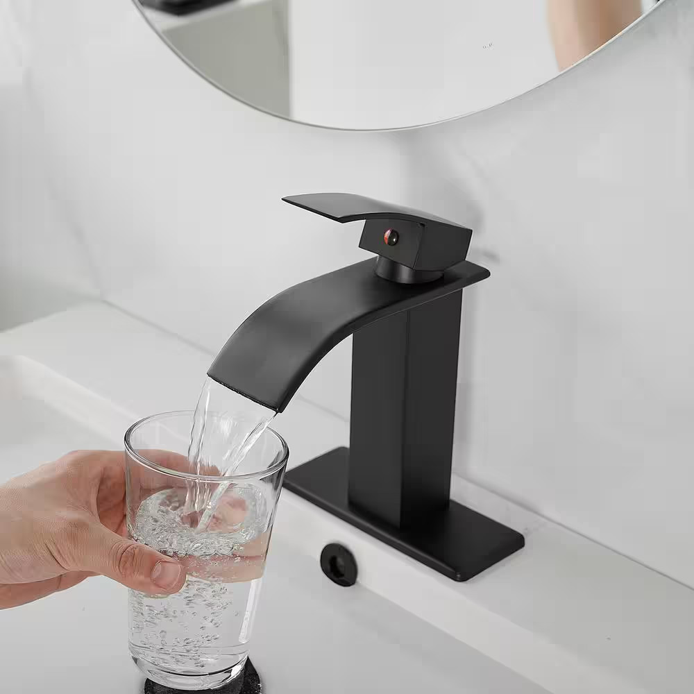Waterfall Single Hole Single-Handle Low-Arc Bathroom Faucet with Supply Line in