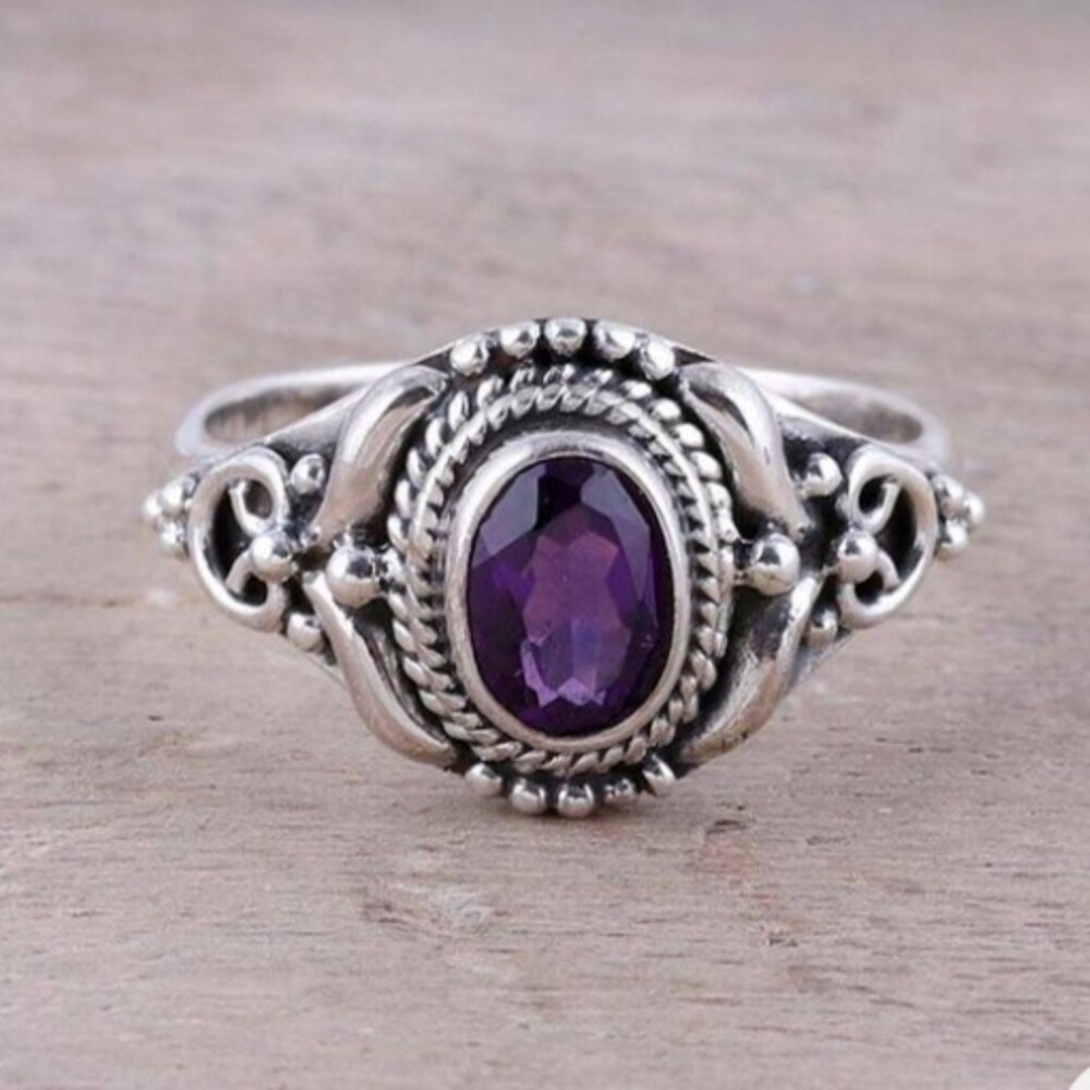 как выглядит Beautiful Amethyst Gemstone 925 Sterling Silver Wedding Ring Gift Women B-45 фото