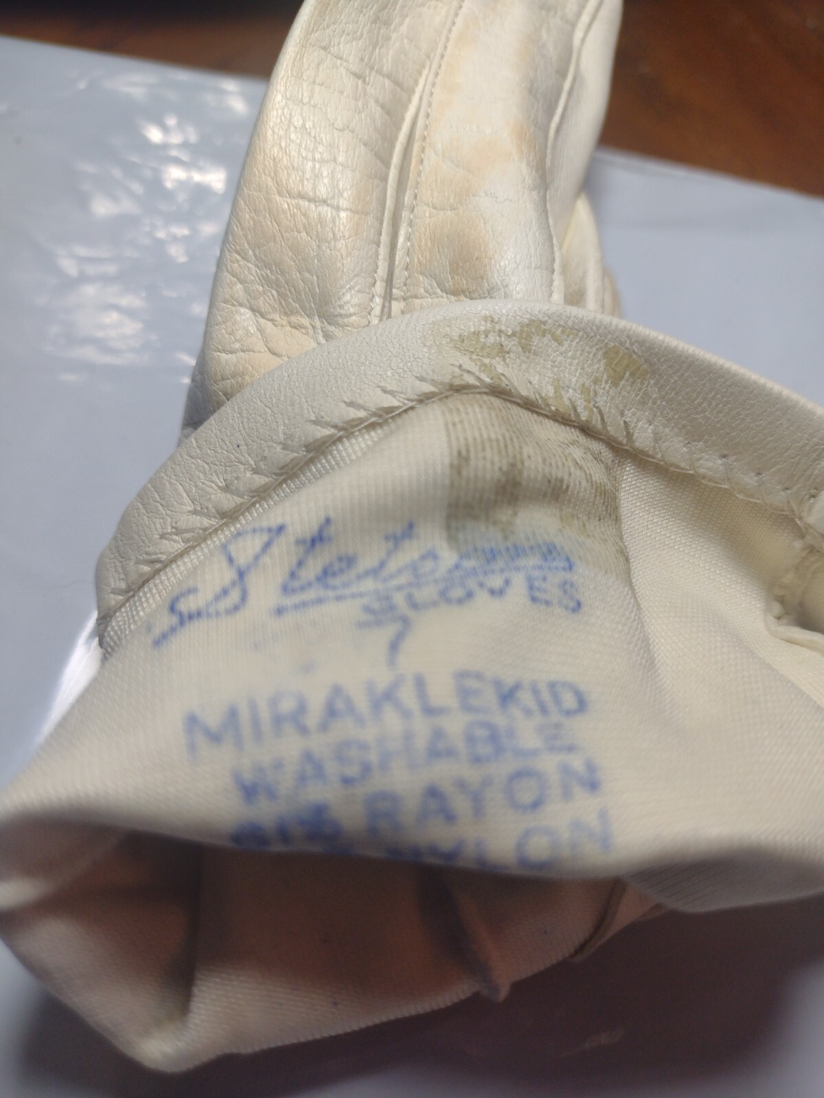Vintage Stetson Mirakle Kid White Leather Womens Gloves Size 7 Slight Color 66/2