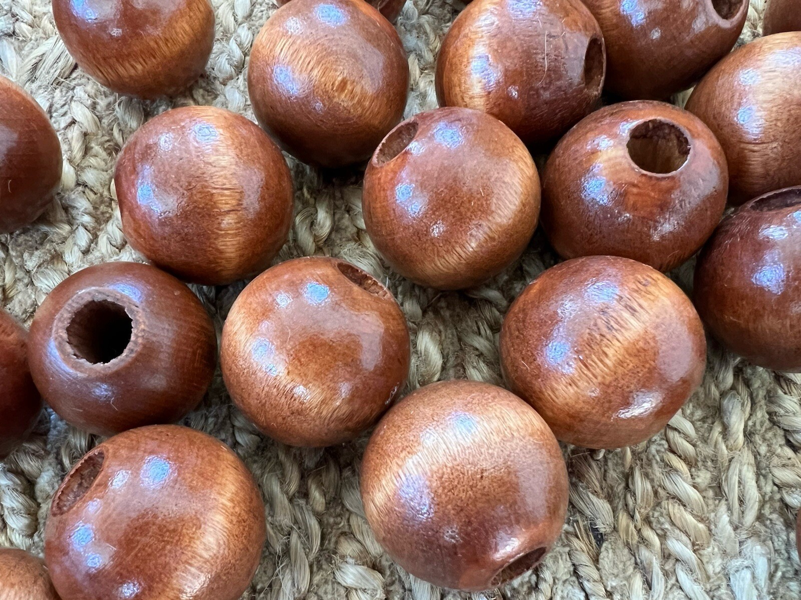 Lot Of 22 Old Stock c1970s MCM Large 1.5 Round Wood Wooden Macrame Beads
