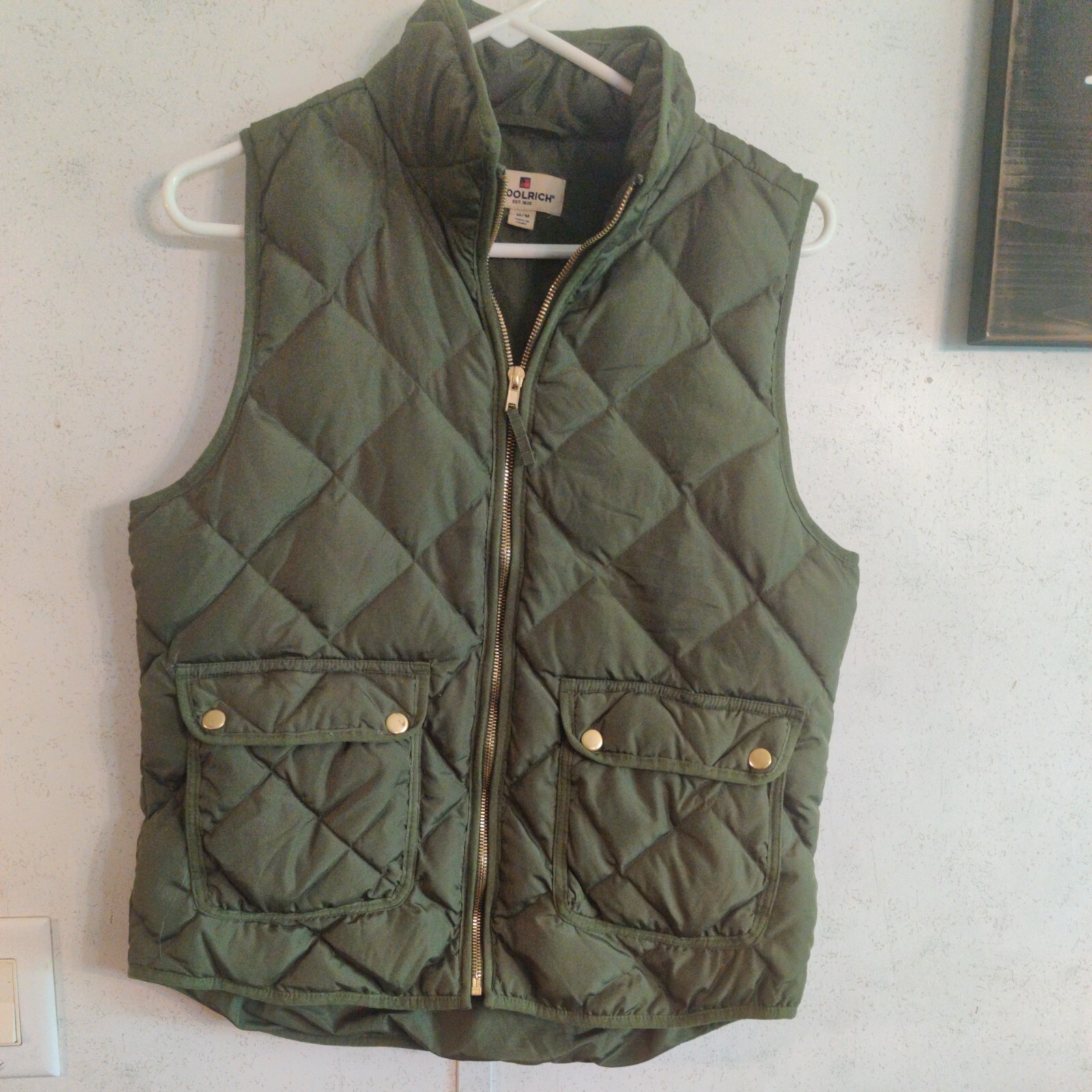 как выглядит WOOLRICH Duck Down Quilted Puffer Vest Olive Green Womens Size MED фото