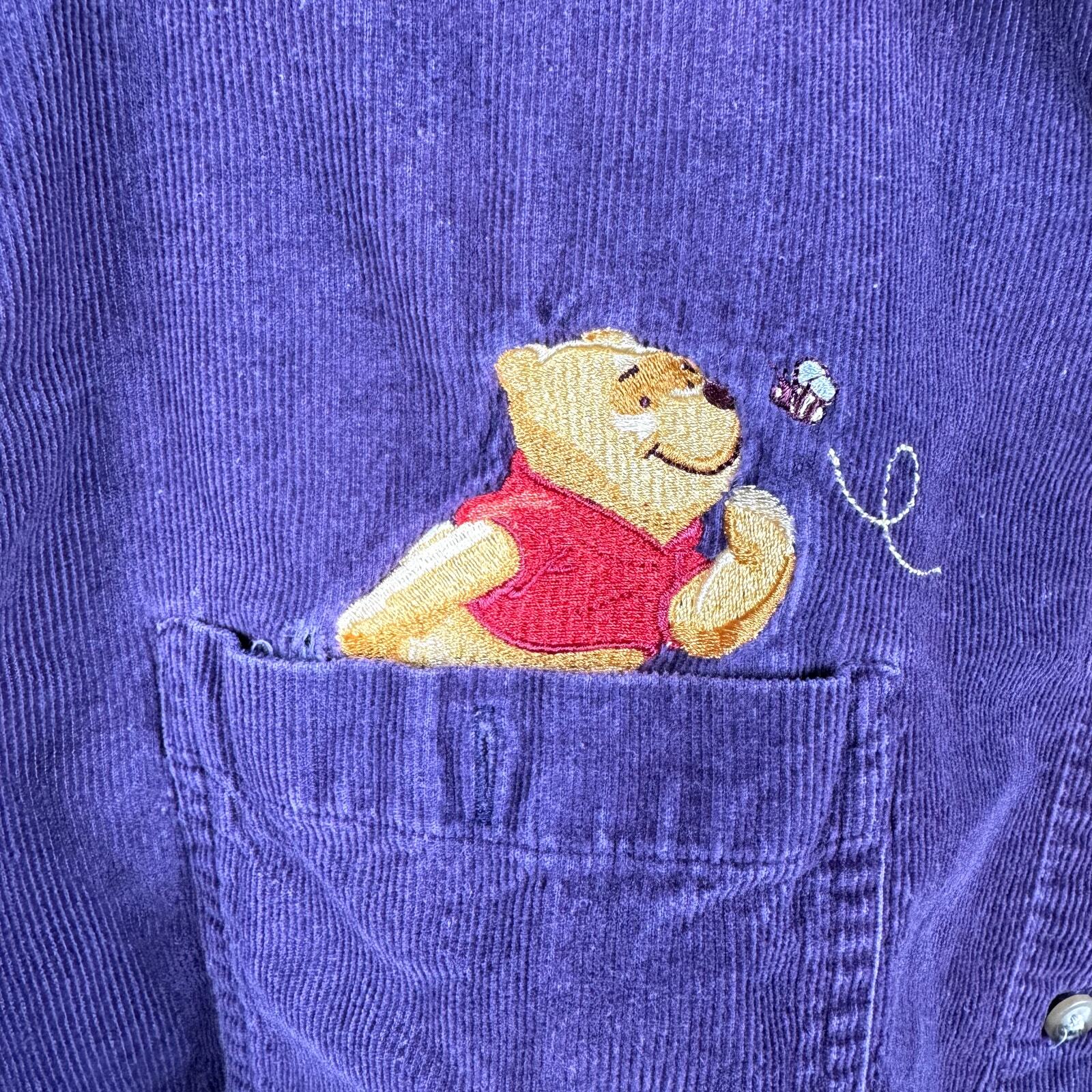 как выглядит Vintage Winnie the Pooh Shirt Sz XL Purple Corduroy Long Sleeve Button Up Disney фото