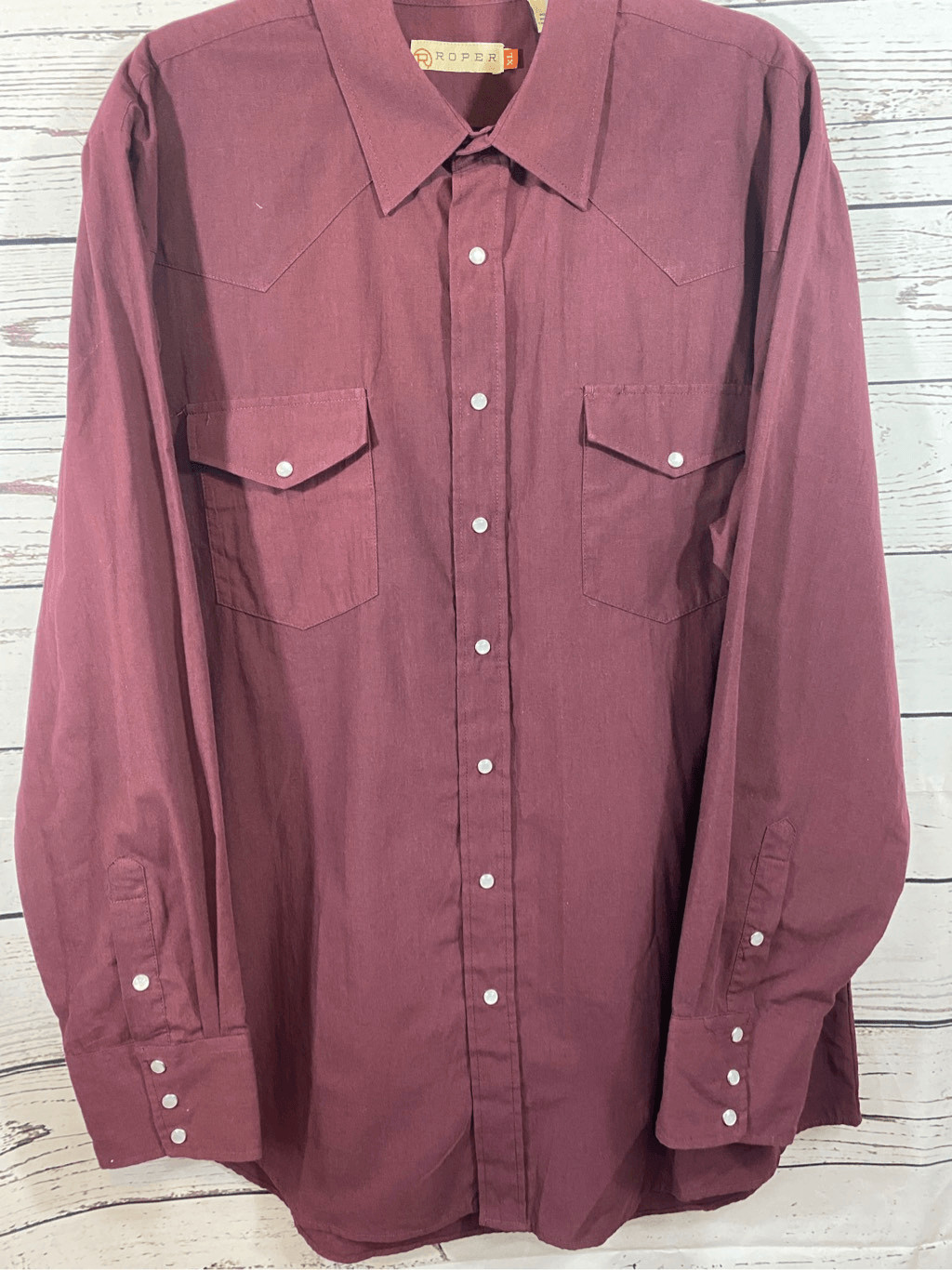 Roper Western Style Mens Shirt in Size XL Burgundy