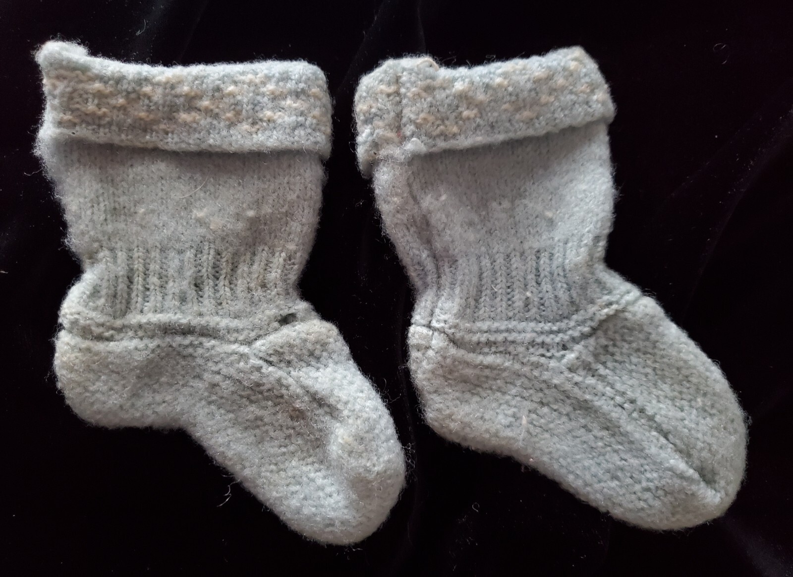 Vintage Knitted Baby/Doll Booties Pair Cream Blue Knit Socks Boy Shower Gift