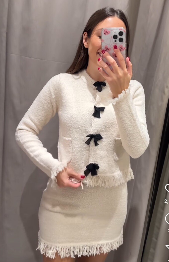 ZARA NWT WOMAN ROUND NECK BOWS KNIT CARDIGAN ECRU 9598/139